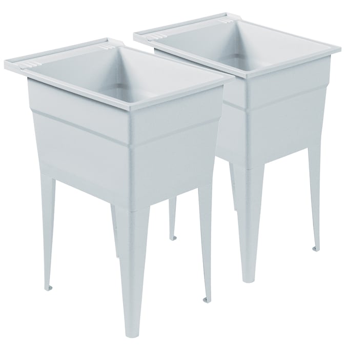 - Includes 2 -19.5 gal (74-liter) heavy-duty utility sinks ideal for the workshop, laundry room or garage
