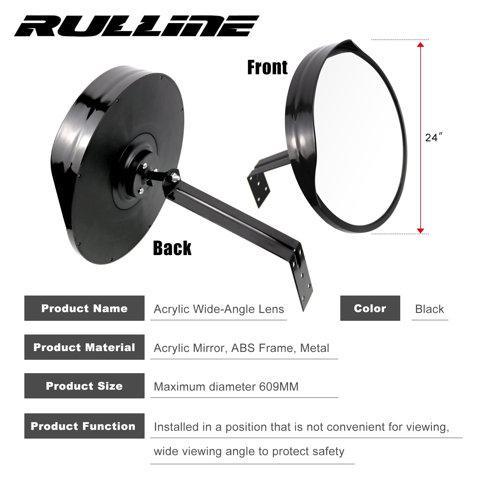 RULLINE 24″ x 24″Convex Security Mirror with Adjustable Wall Fixing Bracket Wide Angle View: The convex design allows for a broad field of vision, enabling you to see around blind corners and into hidden areas Outstanding Functions: Ideal for surveillance and monitoring in stores, mini markets, and booths, enhancing security and theft prevention Premium Material: Made from virtually unbreakable acrylic, this mirror provides a clear and bright reflection, improving visibility of blind spots Versatile Applications: Suitable for various settings, including garages, porches, and stores, with included screws for easy installation Easy Installation: Features a fully adjustable fixing bracket for quick and simple mounting on walls, ensuring a hassle-free setup