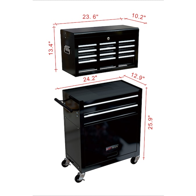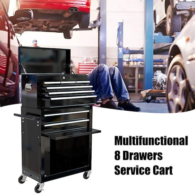 - 8 drawers portable storage tool chest with two comfortable side handles and full length piano hinge