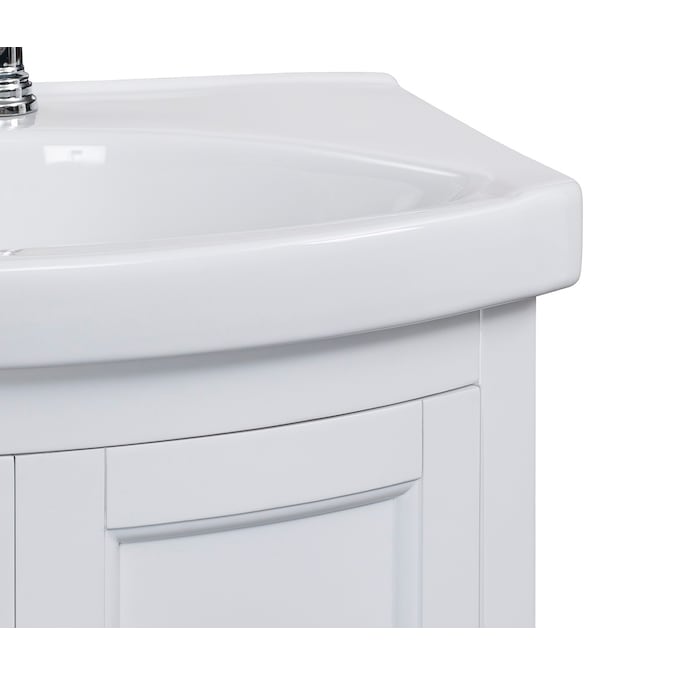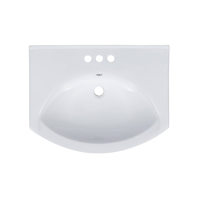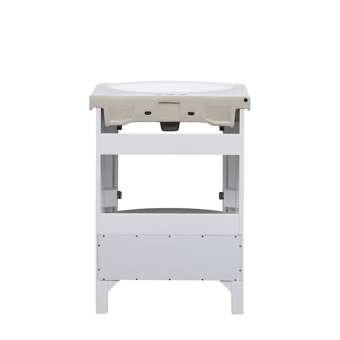 - White vitreous sink top and basin are designed with a beautiful finish that is easy to clean and will last for years under normal wear and tear