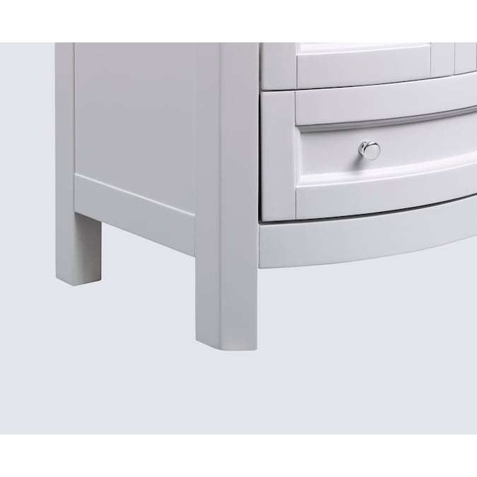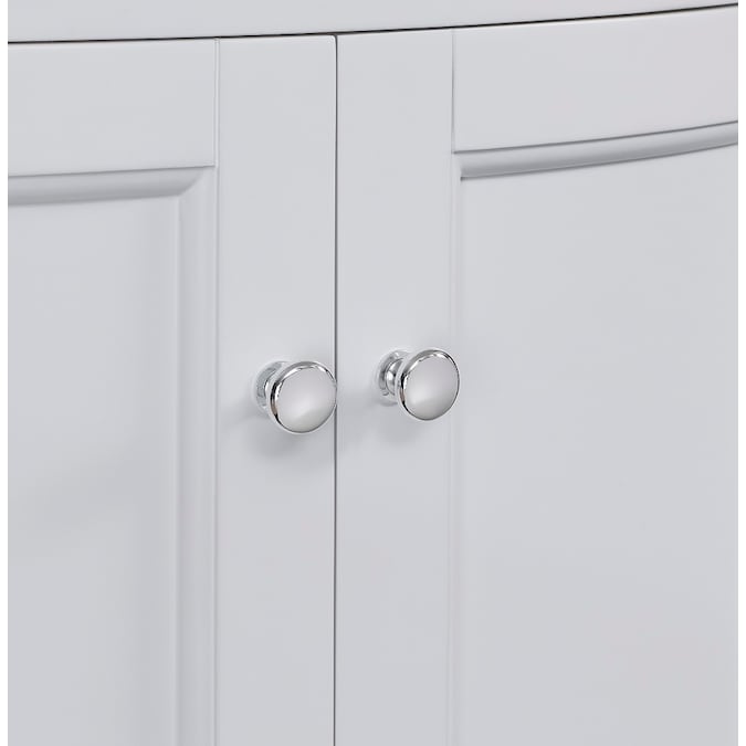 - Chrome accent hardware adds a sophisticated classic finish to the all white vanity