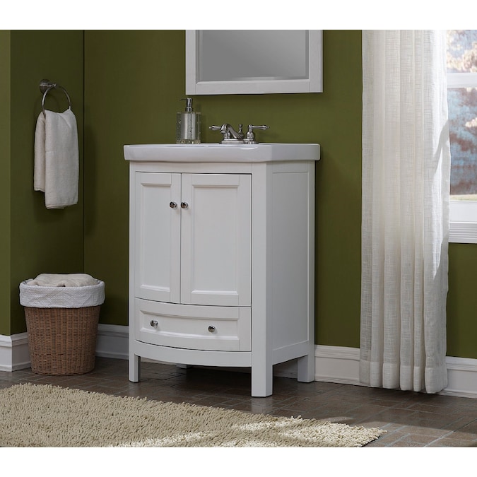 - Contoured design and soft color will complement any accent storage pieces in the bathroom