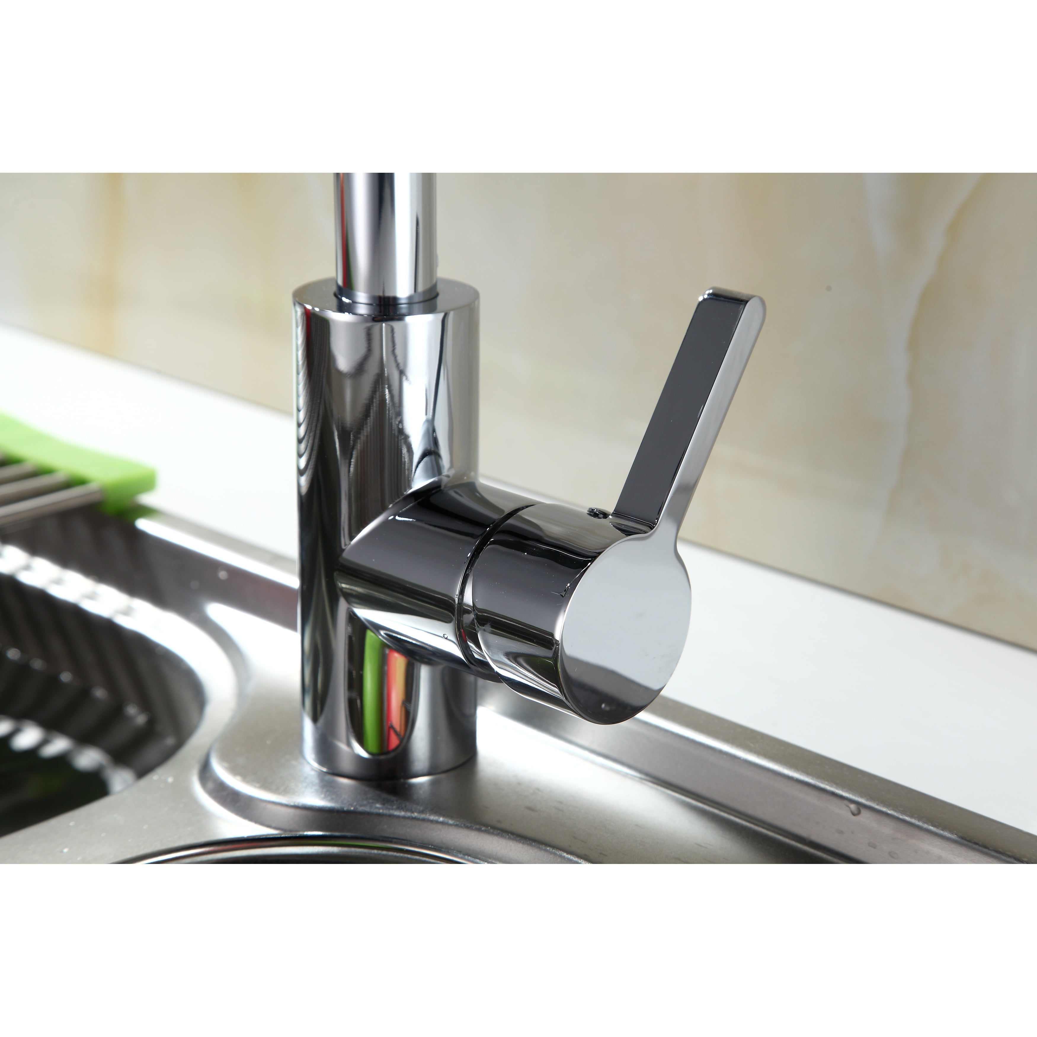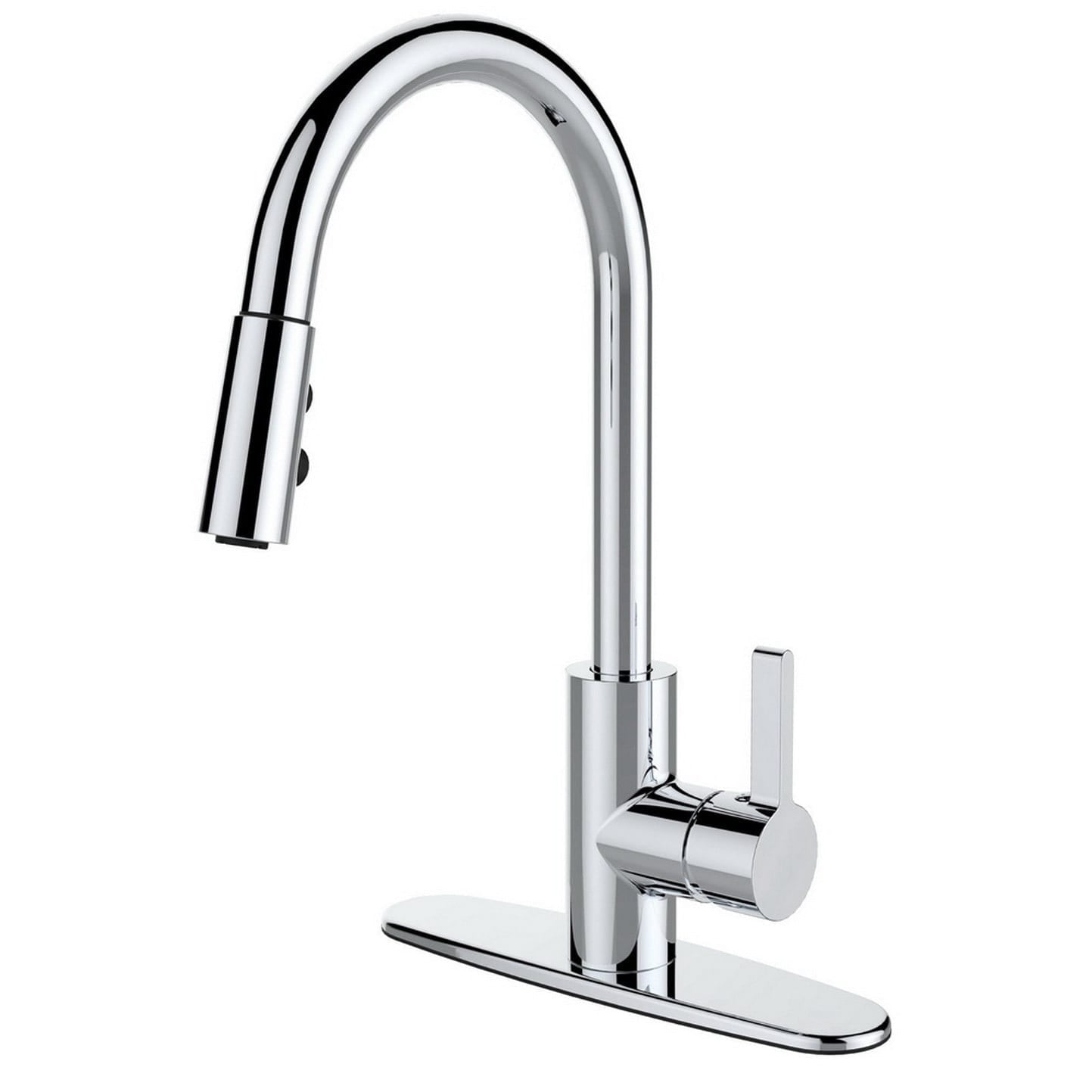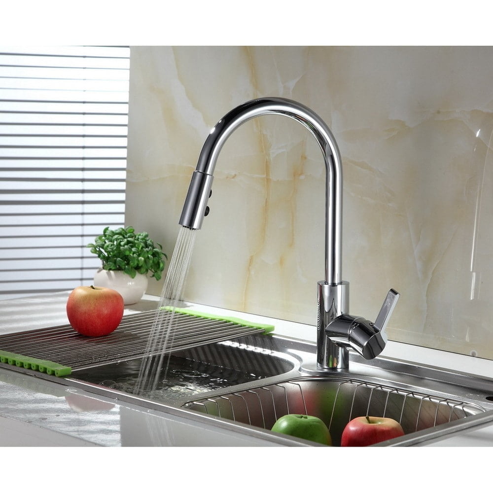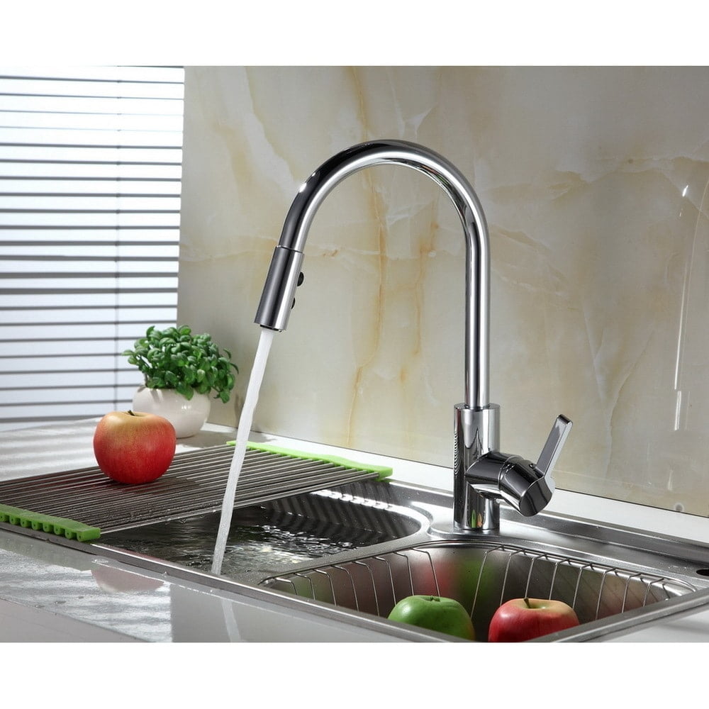 Beautiful Contemporary Single-Handle Metallic Finish Faucet Single or three hole installation with optional 8-inc Deck Plate included Swivel Pull-Down Spout with 3-spray mode operation High quality ceramic cartridge for long lasting leak proof performance 59-inch braided nylon flexible supply lines with Quik Klik Connection for easy installation Eco-Friendly 1.8GPM flow rate and high performance aerator Alloy Body with Brass Internal and Stainless Steel Spout RUNFINE single-handle pull-down kitchen faucet comes in a Chrome finish. The single-handle blends hot and cold water easily and the neck spout swivels 360 degrees for ease of use. The pull-down sprayer offers 3 spray modes of stream, spray, or pause. Deck plate is included so you can use this with 1 or 3 hole installation. Includes hot and cold stainless steel braided hoses with 3/8 in. Quik Klik connector. High quality ceramic cartidge for leak free performance. ADA approved for home installation with ease.