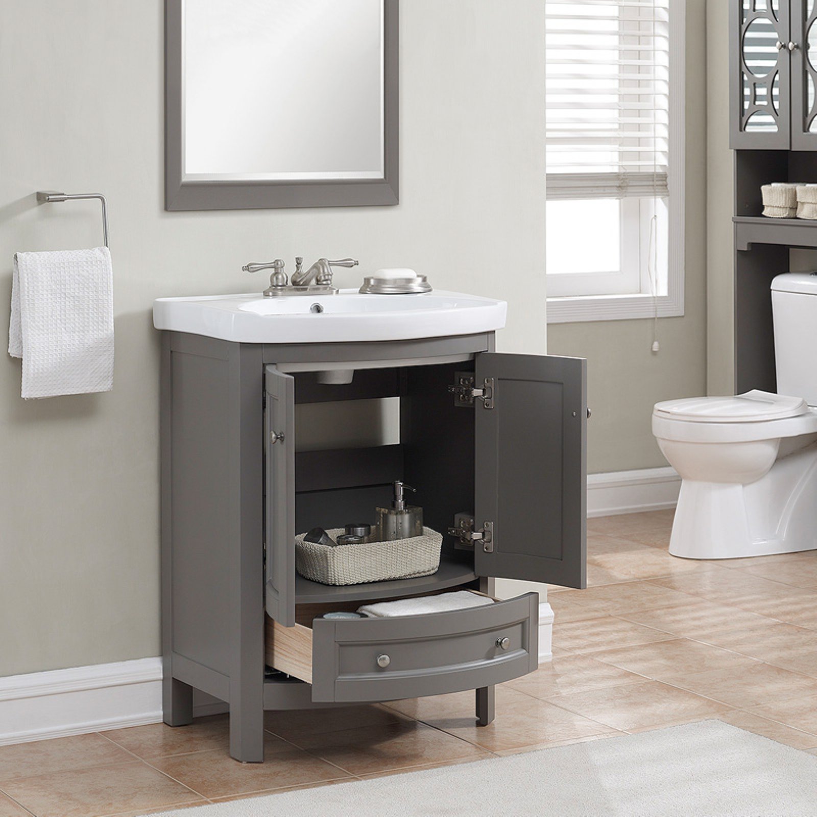 Runfine Vitreous 24.6 inch Bathroom Vanity with Slow Close Doors, White Finish