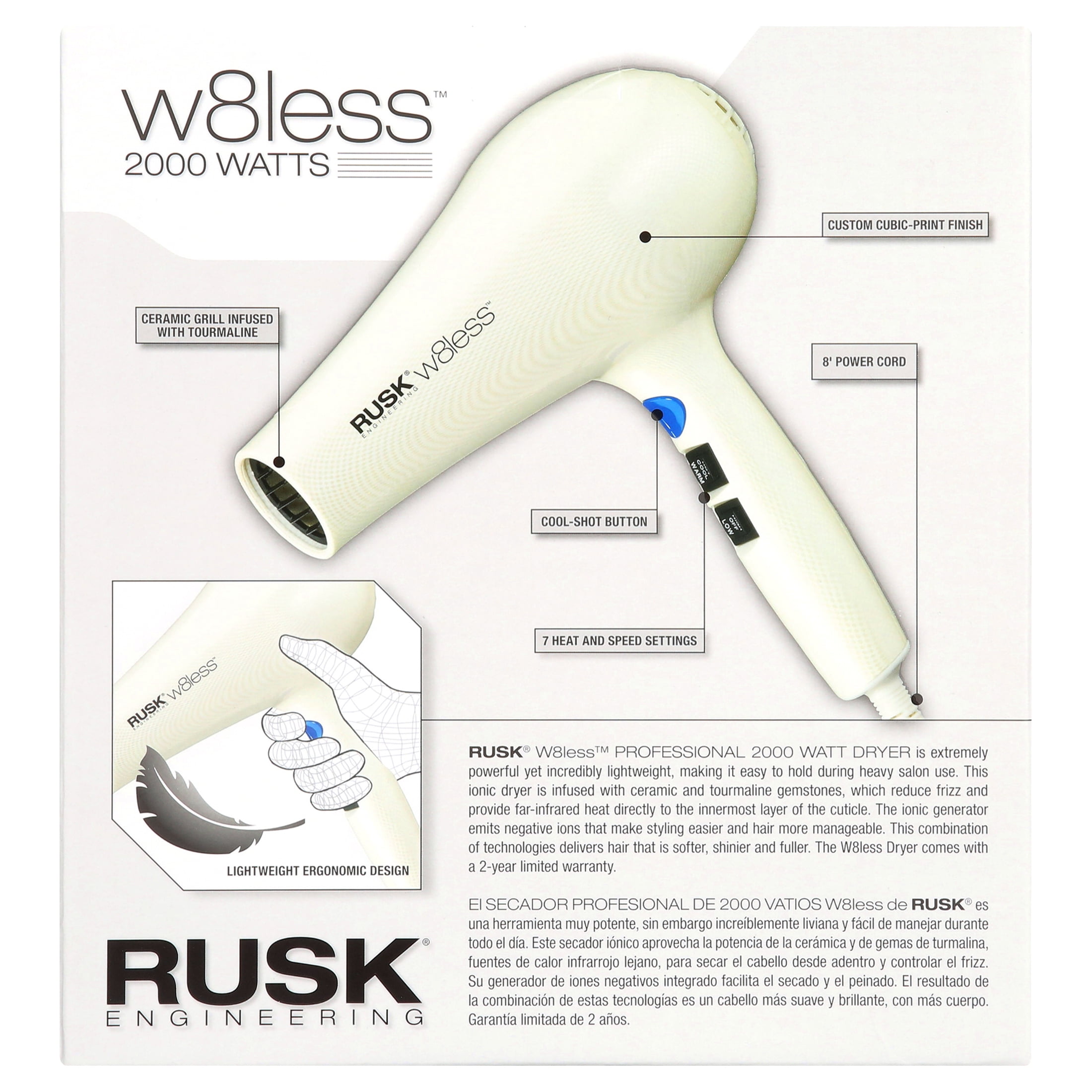RUSK W8less 2000 Watt Ceramic and Tourmaline Hair Dryer