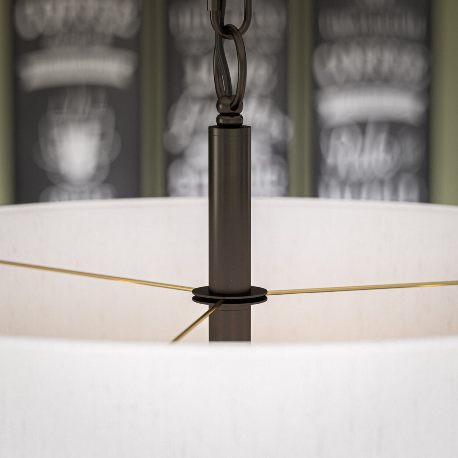 Kenroy Home Rutherford 22” Pendant Light Fixture with Taupe Fabric Drum Shade for Dining Room, Kitchen Table, Bathroom, Foyer, or Entryway, Oil Rubbed Bronze
