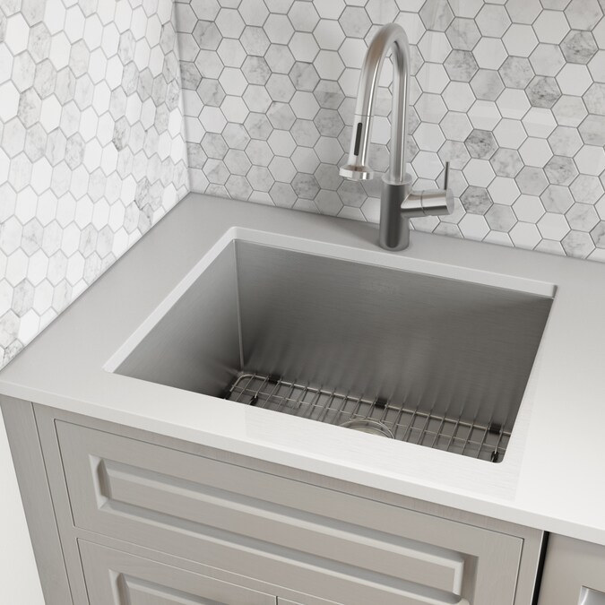 The Forma sink line from Ruvati is specially designed for your home laundry, mud room or utility room. The 12 or 13 inch bowl depth can fit large buckets, and gives you ample space to wash laundry or your boots, or anything else you need to do in a utility sink. The T-304 grade 16 gauge thick stainless steel construction makes it a heavy duty sink for your mud room. The stainless steel rinse grid protects the bottom of the sink, and allows free flow of water even when your sink is full. The basket strainer drain traps dirt and waste and can be easily lifted and emptied into your trash. With the Ruvati Forma sink bring out the true utility of your laundry or mud room.