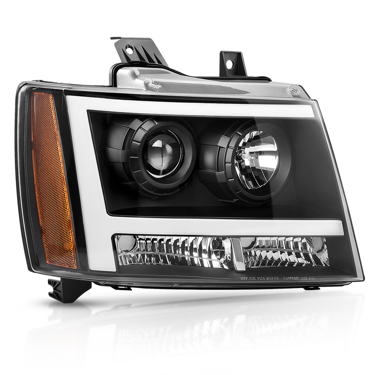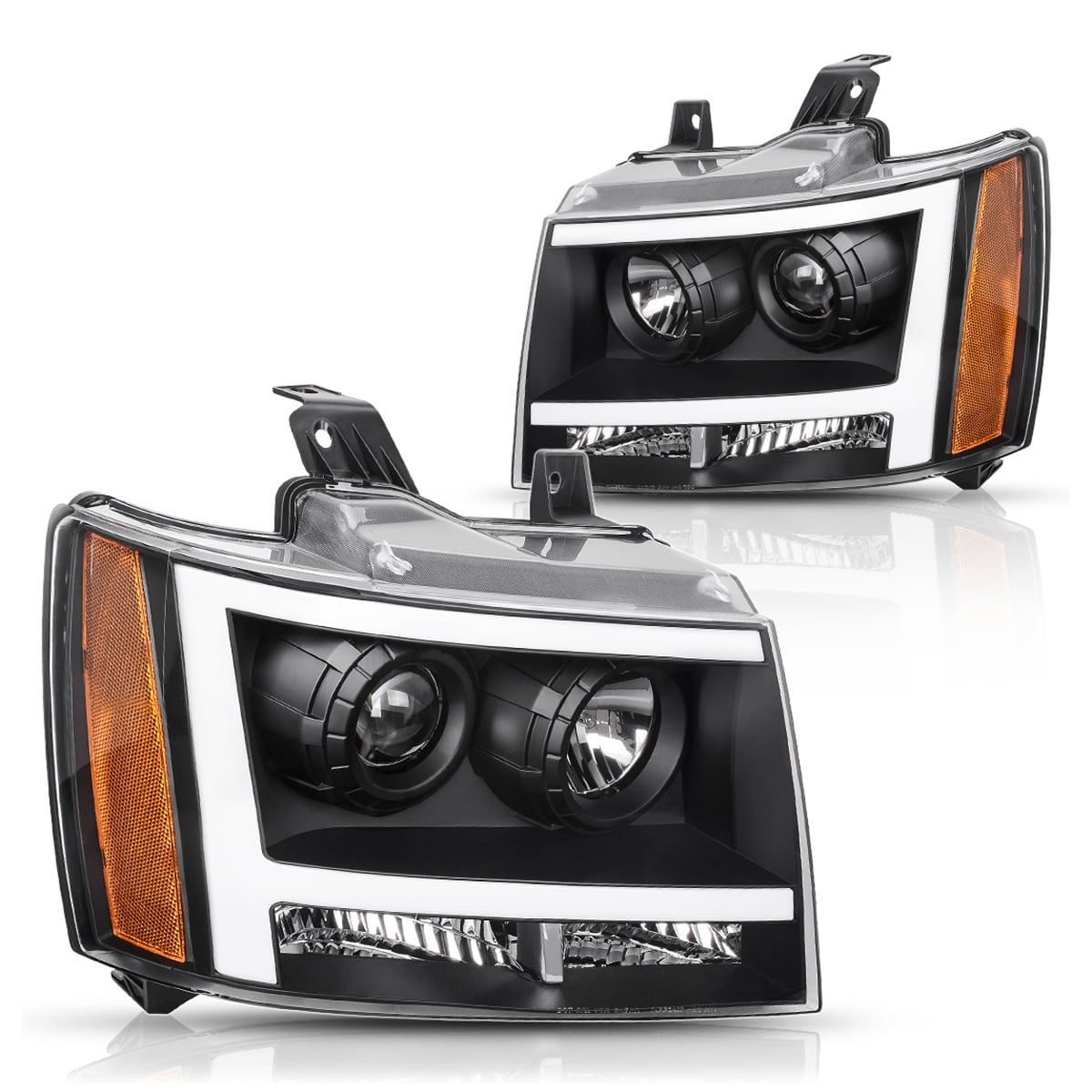 Headlight Assembly LED DRL for 2007-2013 Chevy Avalanche Pickup Truck 07-14 Chevy Suburban/Tahoe Replacement for SUV Pickup Truck Black Housing Compatible with for 2007-2013 Chevrolet Avalanche Pickup Truck (1500 ONLY) for 2007-2014 Chevrolet Suburban for 2007-2014 Chevrolet Tahoe High & Low Beam Bulb Type: High &Low Beam: H1(Halogen Bulbs are included) Bulb Type: LED Position: Front Outside Lens Color: Clear Lens Housing Color: Black Lens Material: Polycarbonate PART NUMBER: 1221-0120L, 1221-0120R HOLLANDER: 114-00966L, 114-00965R PARTSLINK: GM2502263, GM2503263 OEM Part Number:22853025, 22853026