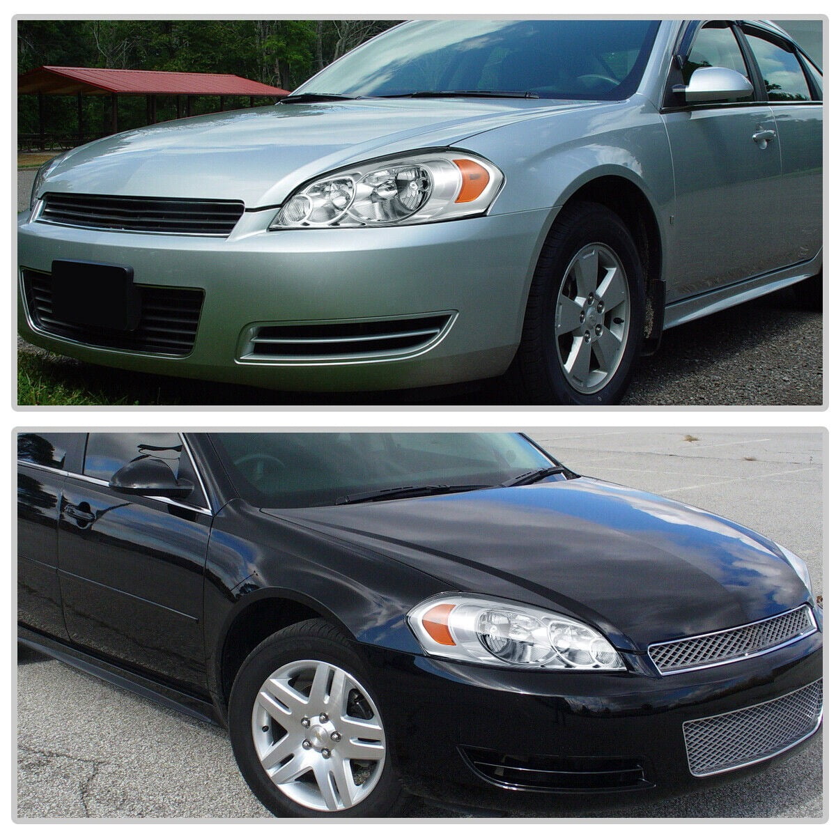 SPECIFICATION: Compatible with: for 2006 2007 2008 2009 2010 2011 2012 2013 Chevrolet Impala for 2014 2015 2016 Chevrolet Impala Limited (Limited ONLY) for 2006 2007 Chevrolet Monte Carlo PART NUMBER: 1221-0140S HOLLANDER: 114-00933R, 114-00934L OEM: 25958359, 25958360 PARTSLINK: GM2502261, GM2503261 Note: Professional installation would be highly recommended. SPECIFICATION: Color: A Chrome Housing Amber Reflector Clear Lens Specific Uses For Product: Head Lights Light Source Type: High Beam:H9/Low Beam:H11(Halogen bulbs aren’t included) Vehicle Service Type: 2006 2007 Chevrolet Monte Carlo, 2006-2013 Chevrolet Impala, 2014-2016 Chevrolet Impala Limited Year 2013 Voltage: 12 Volts Position: Front Outside Lens Color: Clear