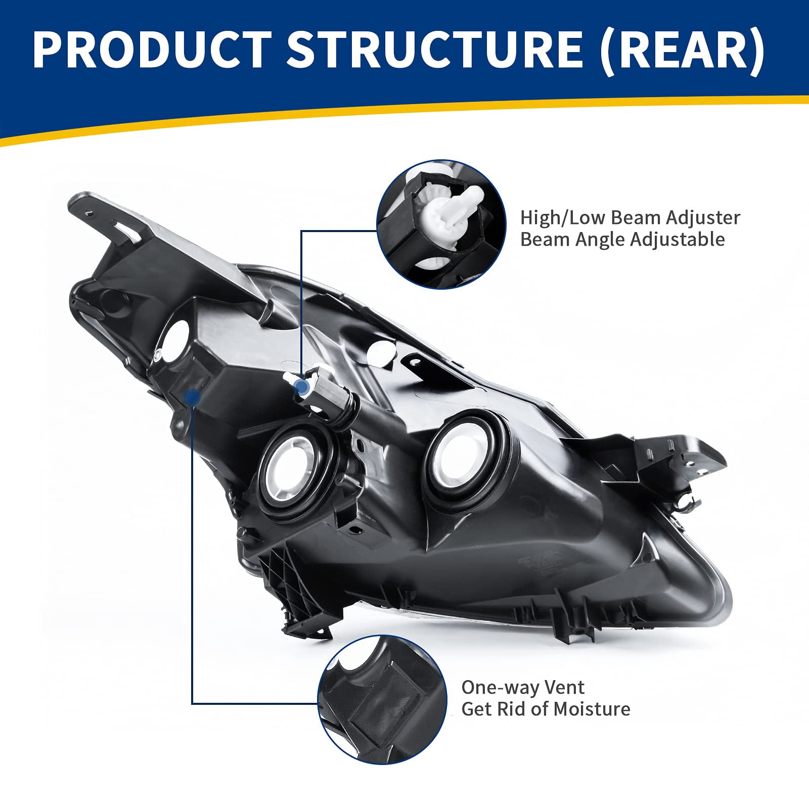 Completely sealed: Prevents moisture from being trapped inside the housing Brighter & safer:Makes your vehicle more visible to other road users to increase your driving safety One-way vent: Drives out moisture and avoids lens misting PC lens: Impact resistance for an enhanced driving experience in any environment