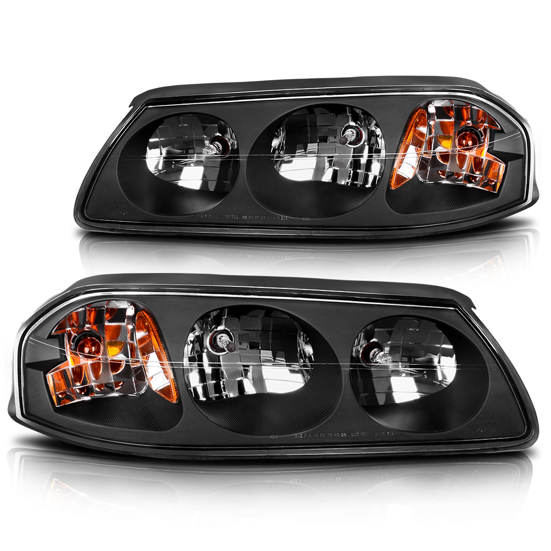 Description: This is a 100% brand new pair of Headlights Replacement Assemblies in Midnight Black Housing With Crystal Clear Lens Compatible With: 00-05 Chevy Impala All Models Specification: Low Beam: 9006 Light Bulb Not Included High Beam: 9005 Light Bulb Not Included