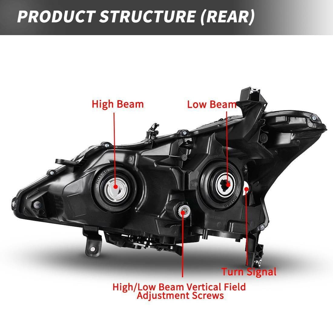 RVNI Headlights Assembly for 2013-2015 Nissan Altima Sedan Chrome Housing Headlamps