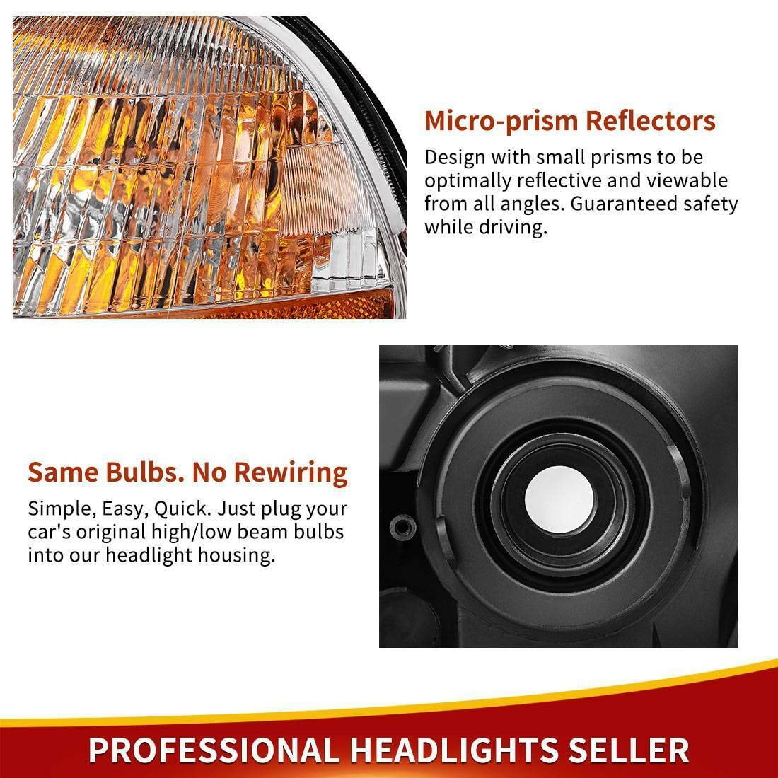 RVNI Headlights For 1996-1998 Honda Civic Chrome Housing Amber Reflector Clear Lens
