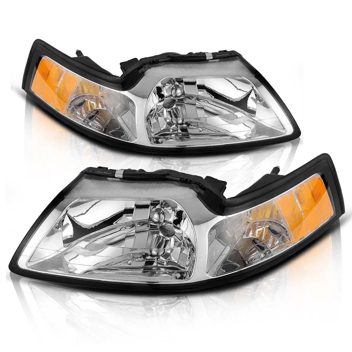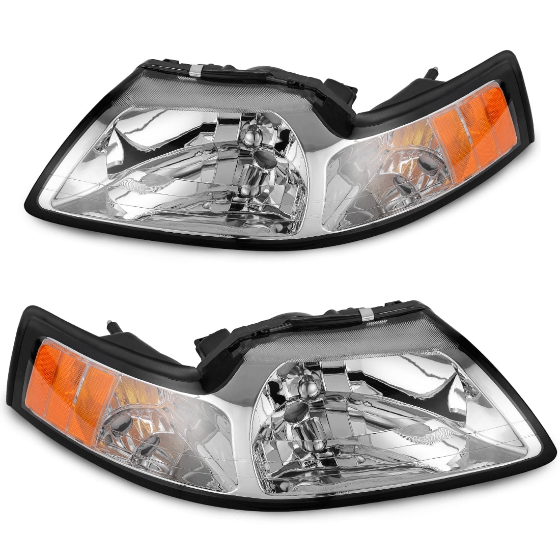 Chrome Housing Headlights For 1999-2004 Ford Mustang Pair Replacement Left+Right 2000 2001 2002 2003z Compatible for 1999 2000 2001 2002 2003 2004 Ford Mustang only NOTE: Professional Installation would be highly recommended. Item specifics Condition:New Manufacturer Warranty:1 Year Bulb Shape Code:HB5 (9007) Lens Color:Clear Housing Color: Black Placement on Vehicle:Front, Left(Driver) Side, Right(Passenger) Side Housing Color:Black Type:Headlight Assembly Fitment Type:Direct Replacement Headlight Style:Factory Headlight included: Driver & Passenger Side High Beam:HB5 9007 (bulb not included) Low Beam:HB5 9007 (bulb not included) To FIt:For 1999 2000 2001 2002 2003 2004 Ford Mustang