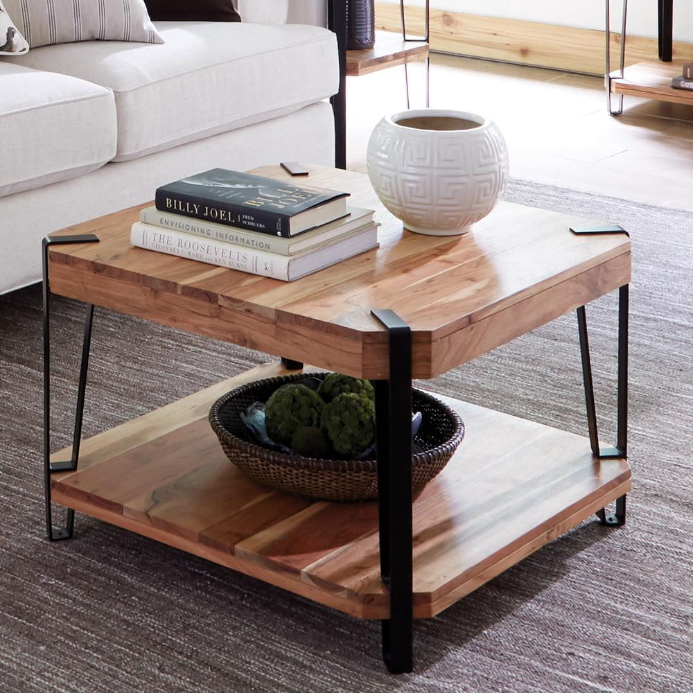 Ryegate Natural Solid Wood with Metal Cube Coffee Table