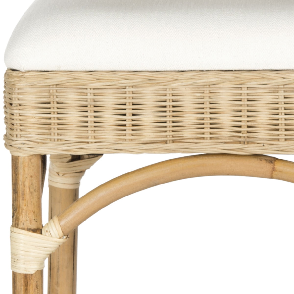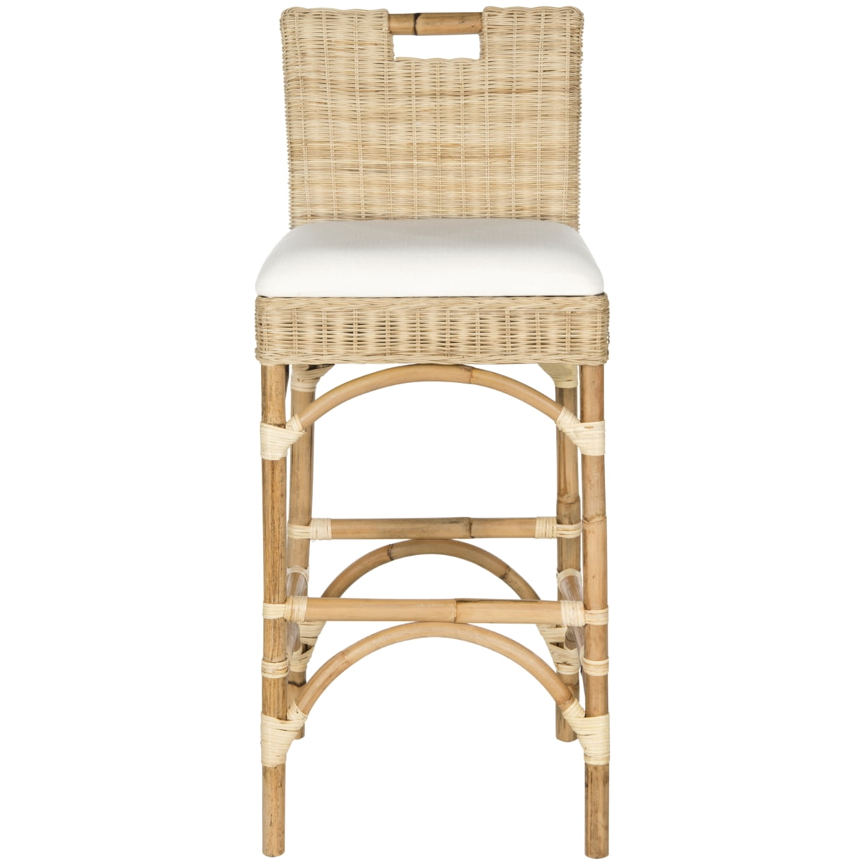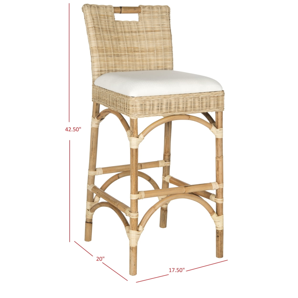 Solid rattan frame for long lasting longevity No assembly required Color: Natural Product Dimensions: 16.9 in. W x 15.7 in. D x 10.76 in. H Seat Height: 31.5 in. Weight Capacity: 275 lbs