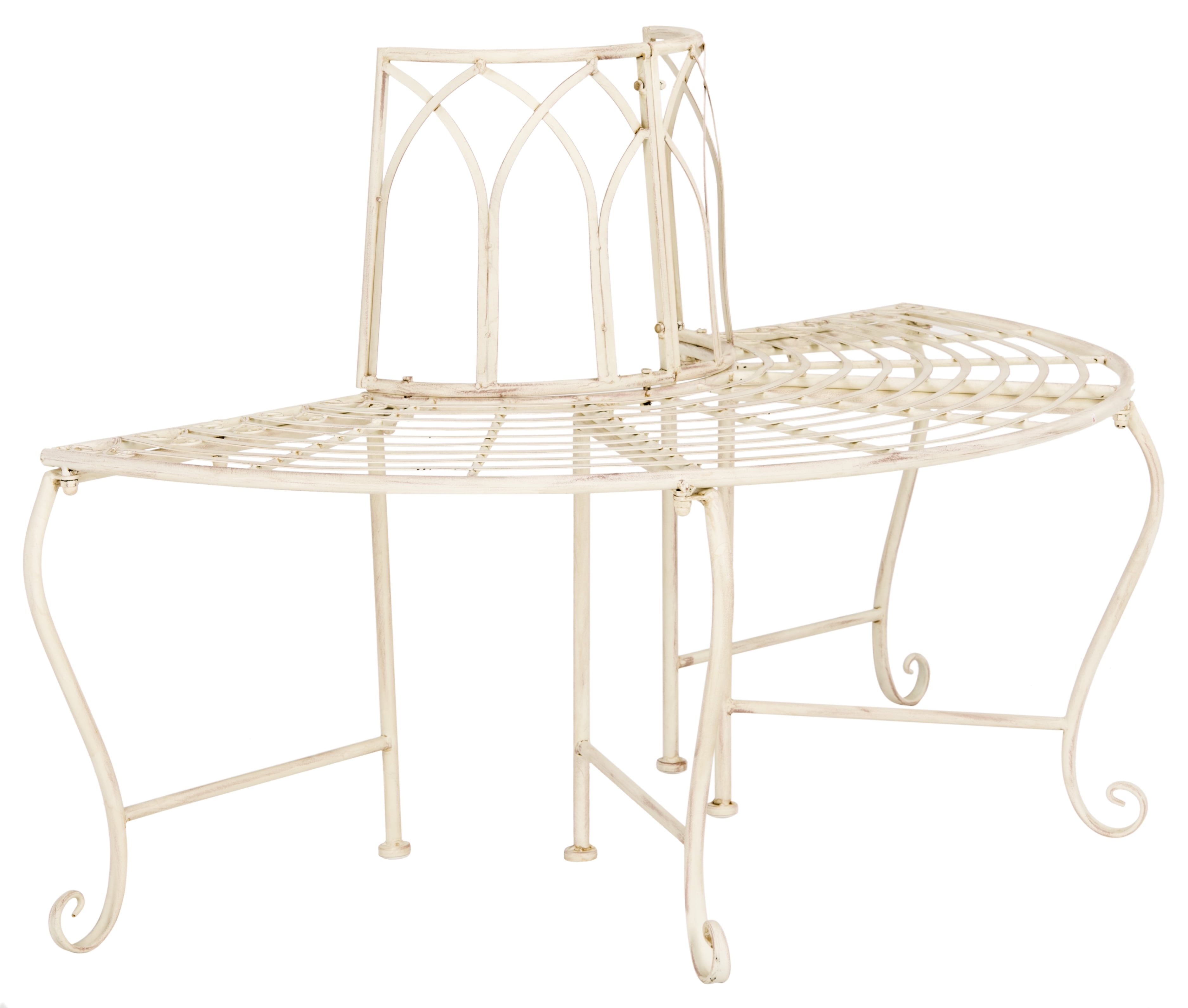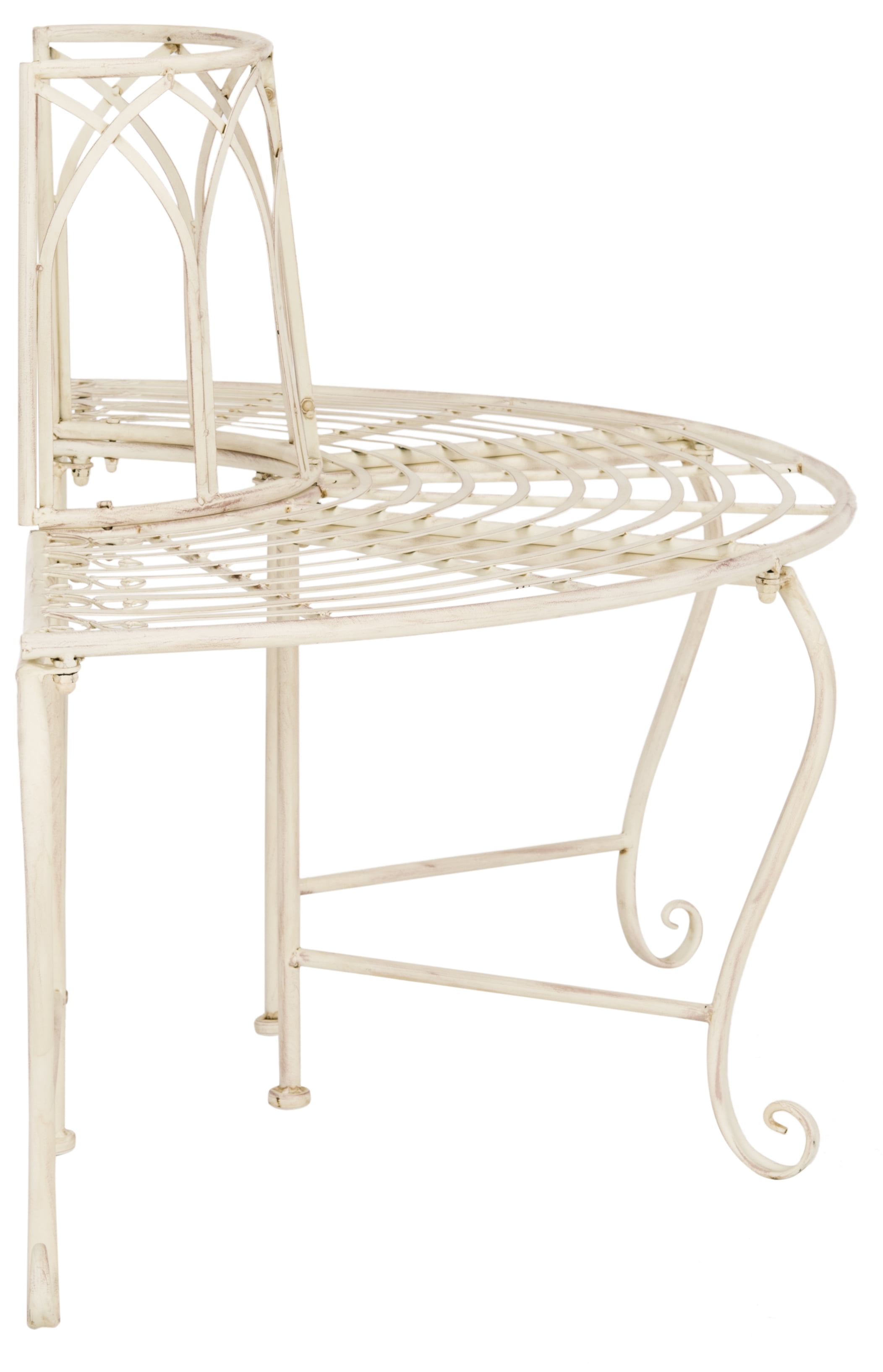 This romantic outdoor half-circle metal tree bench adds a whimsical touch to any estate. Designed with an antique white finish, it creates an instant shaded oasis. Ideal for adding extra seating in the garden and timeless charm to any outdoor living area. Features: Material: Metal Finish: Antique white Powder coating Assembly needed: Yes Weather resistant Specifications: Product Dimensions: 30.75″H x 50″W x 23.5″D Product Weight: 13 lbs Seat Height: 17″ Seat Depth: 15″