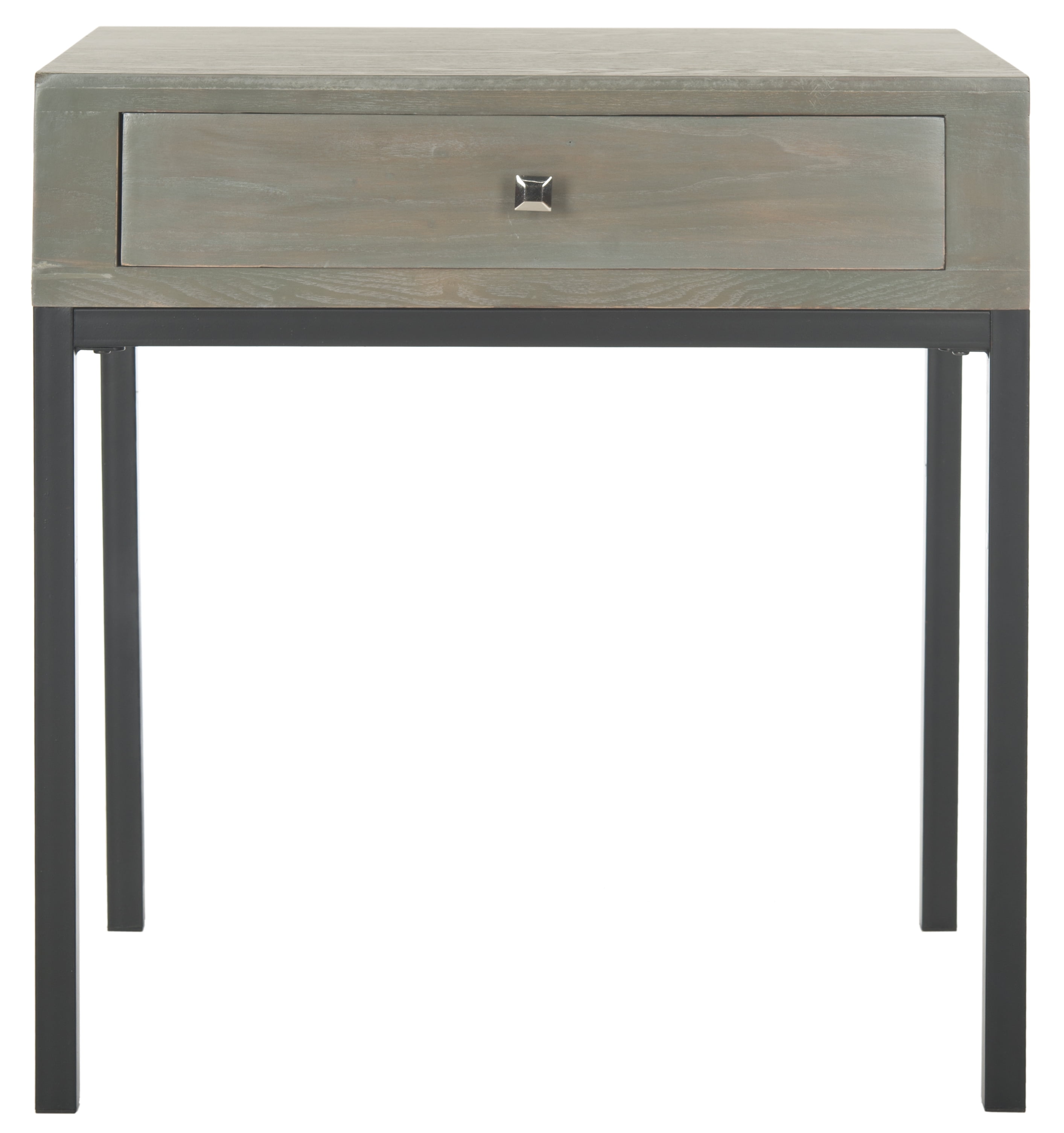 Contemporary design adds a chic look to your home Durable elm wood and metal frame for long lasting longevity Minor assembly needed Color: French Grey Item Dimension: 24 in. W x 18.1 in. D x 27.8 in. H Drawer Dimension: 18.7 in. W x 3.7 in. H x 16.6 in. D Leg Height: 19.3 in. Item Weight: 20.9 lbs. Weight Capacity: 25 lbs. for drawer Wood is a natural material with variations of color shade, configuration, streaks, and grain structure, each individual piece of Safavieh furniture has characteristic markings that will differ from photo and showroom samples, regular attention and maintenance of fine furniture can ensure its beauty for years to come, always use felt pads under all articles to prevent discoloration or softening of the lacquer, plastic and rubber bases on items can discolor wood Accessories in life style photo(s) not included Please note: The images and product dimensions on our website are as accurate as possible. Due to differences in computer monitors, some furniture colors may vary slightly. Lengths and widths may vary from the published dimensions. We do our best to provide you with an exact measurement, but please be advised that some variation exists. Dust regularly with a soft, dry cloth. Never use oiled or treated cloths on lacquered finishes. Some finishes can be wiped with a damp (not wet) cloth, followed at once by rubbing with a dry cloth to remove fingerprints and smudges. For persistent spots, gently clean with a soft cloth and a solution of water and mild soap, make sure to wipe dry. Use adhesive felt pads, coasters and placemats to protect your furniture.