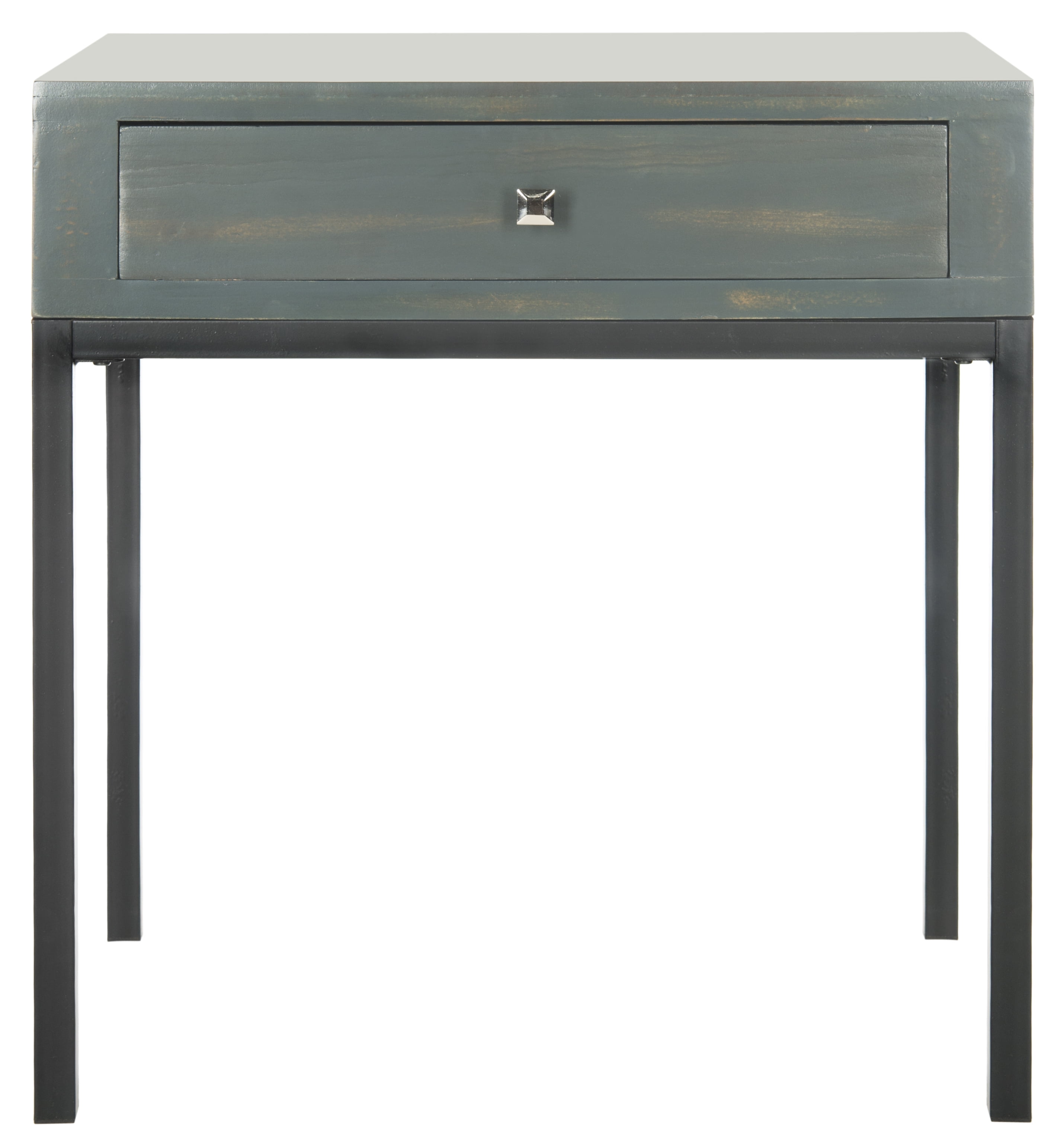 SAFAVIEH Adena Solid Rustic End Table with Storage Drawer, Steel Teal