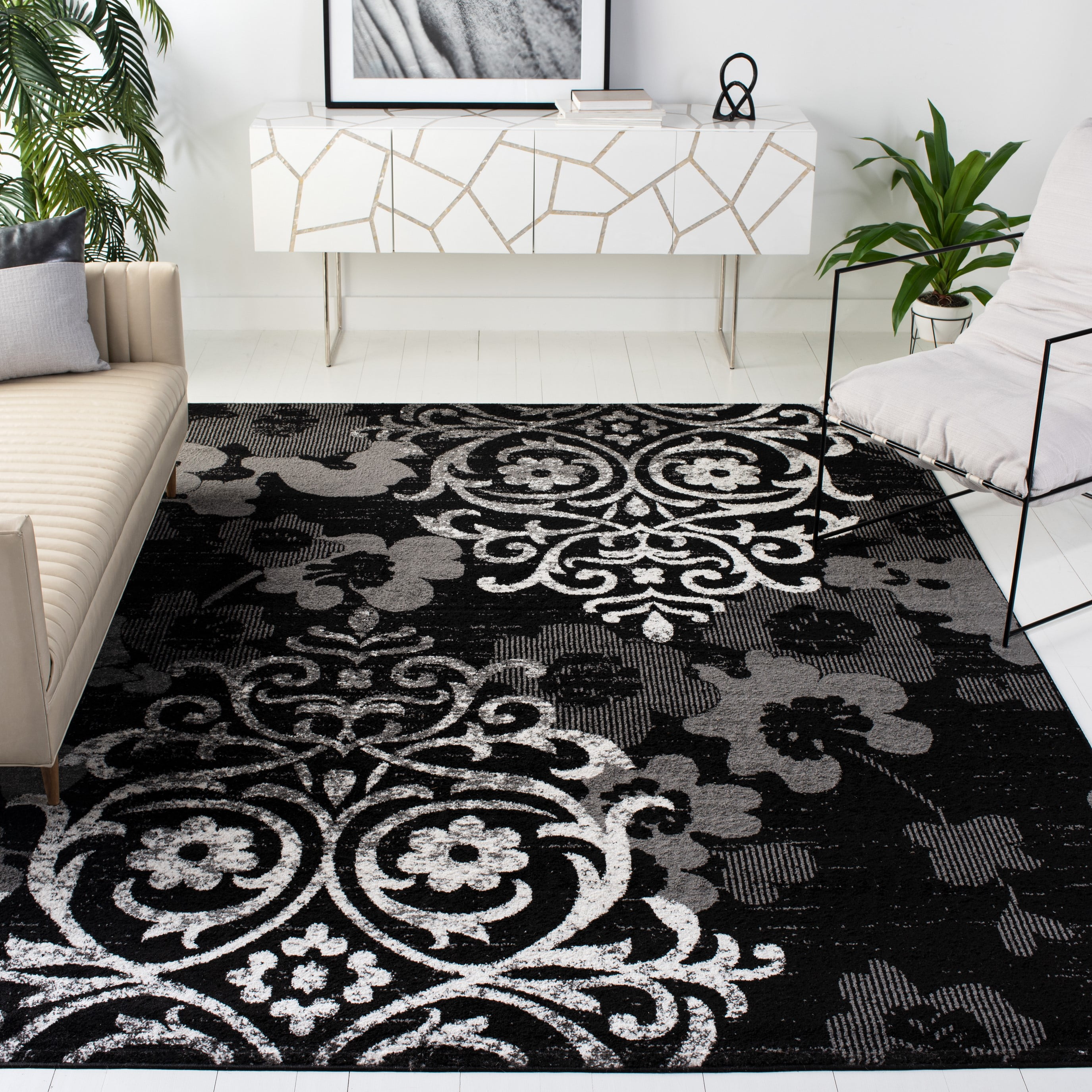 SAFAVIEH Adirondack Hortense Floral Area Rug, Black/Silver, 10′ x 14′