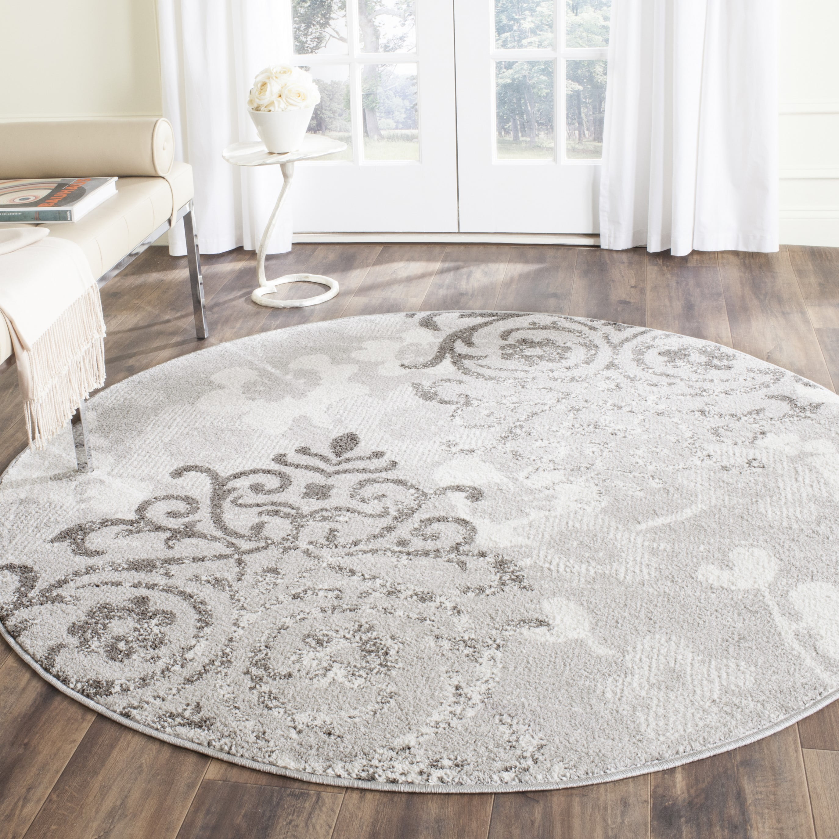 SAFAVIEH Adirondack Hortense Floral Area Rug, Silver/Ivory, 11′ x 11′ Round