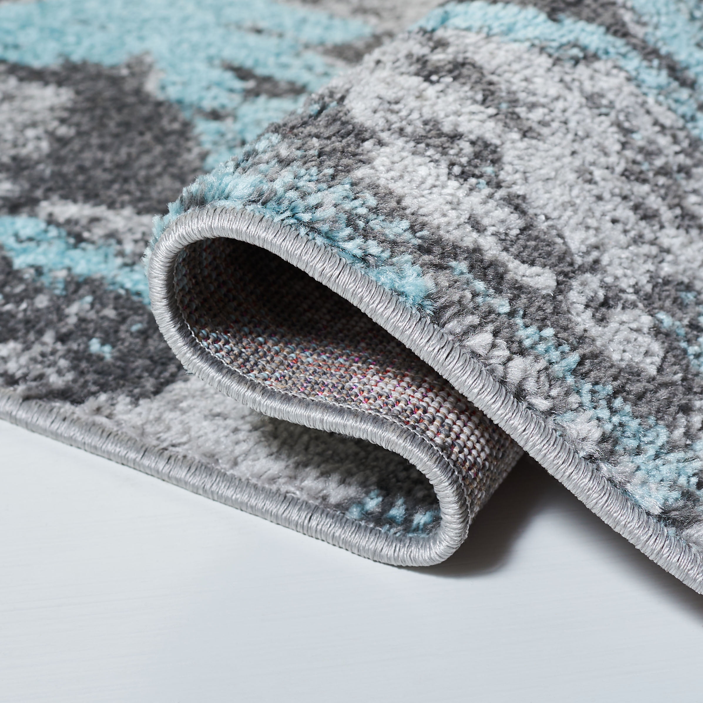 Color: Turquoise/Grey Size: 10′ x 10′ Round Power Loomed in Turkey Pile Height: 0.5 in. Polypropylene Backing contains jute , rug pad (sold separately) recommended to help prevent shifting and sliding Indoor Use Accessories in lifestyle photos not included Vacuum regularly (preferably one without beater bars) and spot clean; for hard-to-remove stains, professional rug cleaning is recommended; rotating your rugs every 3-6 months will protect against uneven wear from foot traffic and furniture weight Use rug protectors under the legs of heavy furniture to avoid flattening piles Avoid direct sunlight as it will cause the colors in your area rug to fade over time; place your area rug away from direct sunlight whenever possible For an instant decorating makeover, this area rug is one of the easiest and most fashionable ways to refresh a room with character and style. Please note: The images and product dimensions on our website are as accurate as possible. Due to differences in computer monitors, some rug colors may vary slightly. Lengths and widths may vary from the published dimensions. We do our best to provide you with an exact measurement, but please be advised that some variation exists. Patterns may vary slightly according to shape and size selected. Packing and shipping of your rug may cause temporary creases; these surface waves are not imperfections or damages and will gradually recede; back-rolling or reverse rolling is the fastest and easiest way to remove creases in your area rug; allow ample time for your rug to settle, these creases and waves will normally flatten out Available in multiple sizes For carpet-to-carpet use, we recommend placing a hold pad in-between for protection