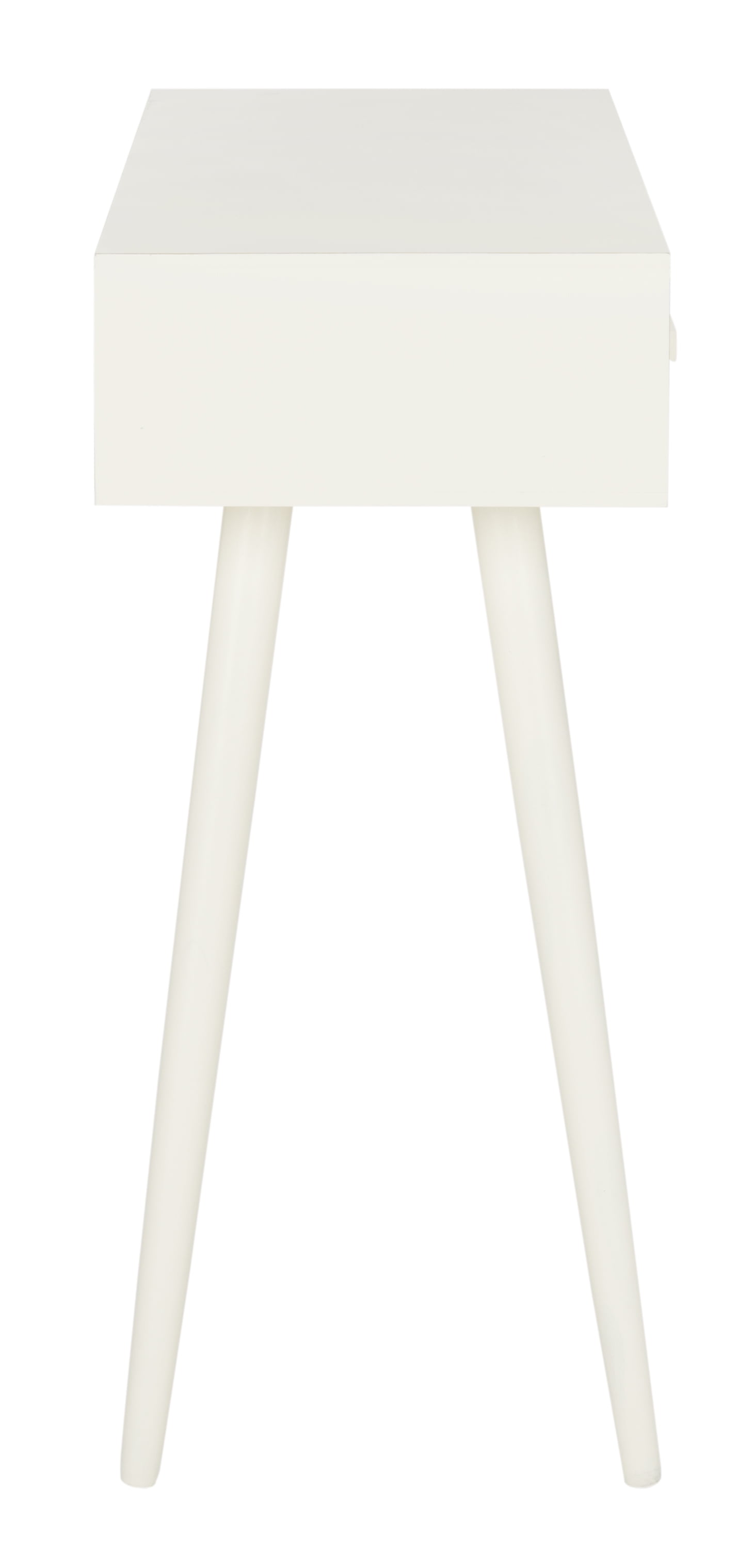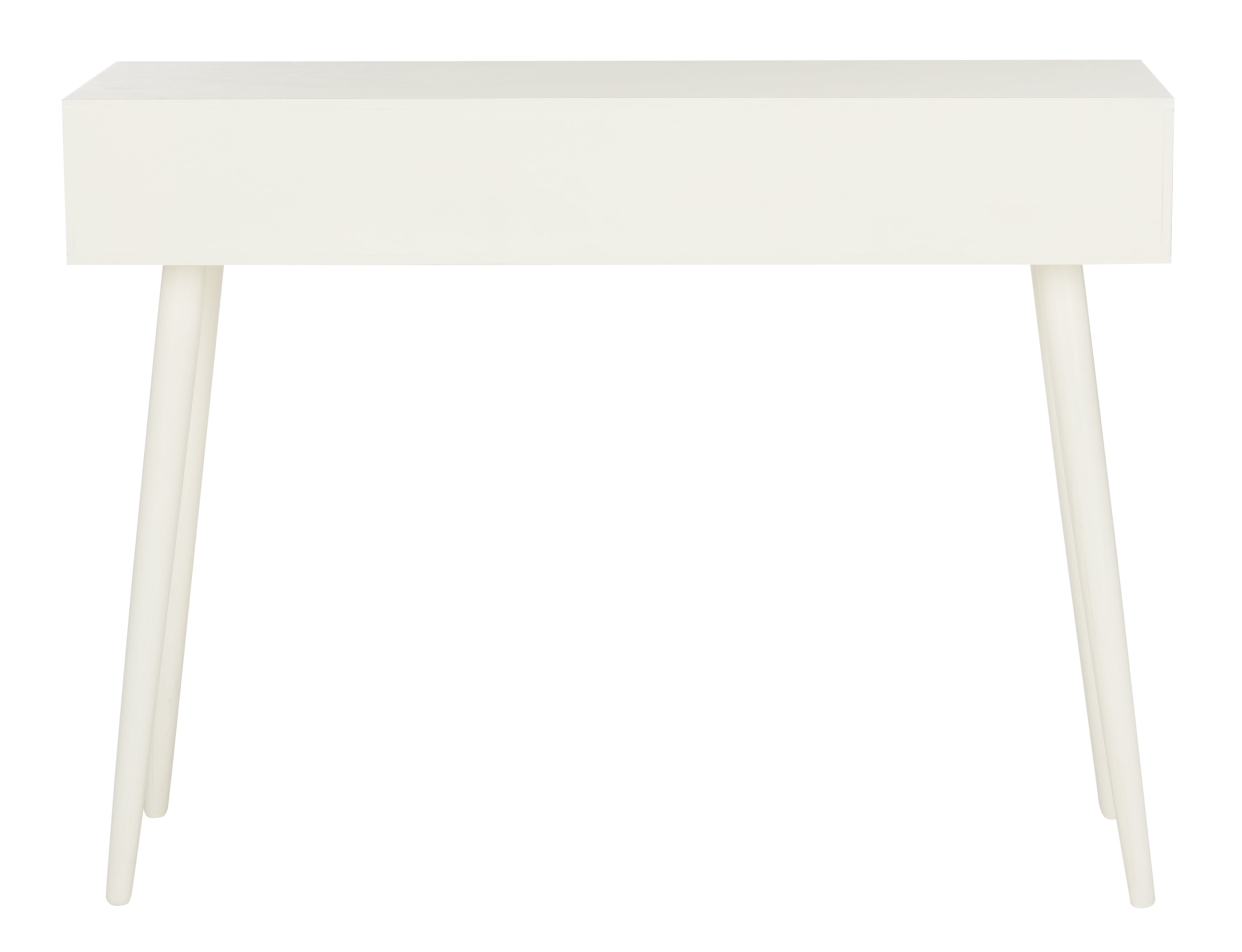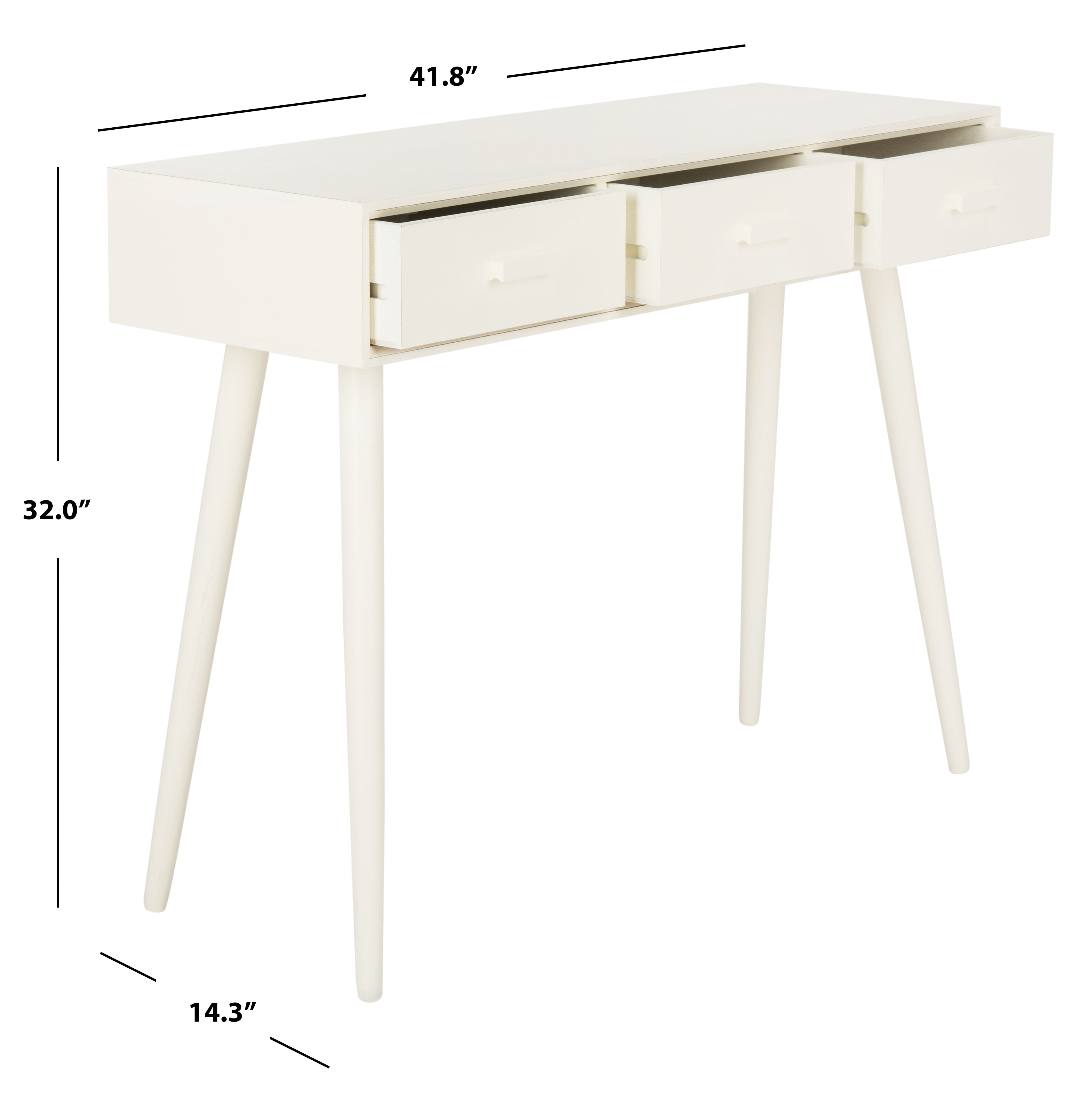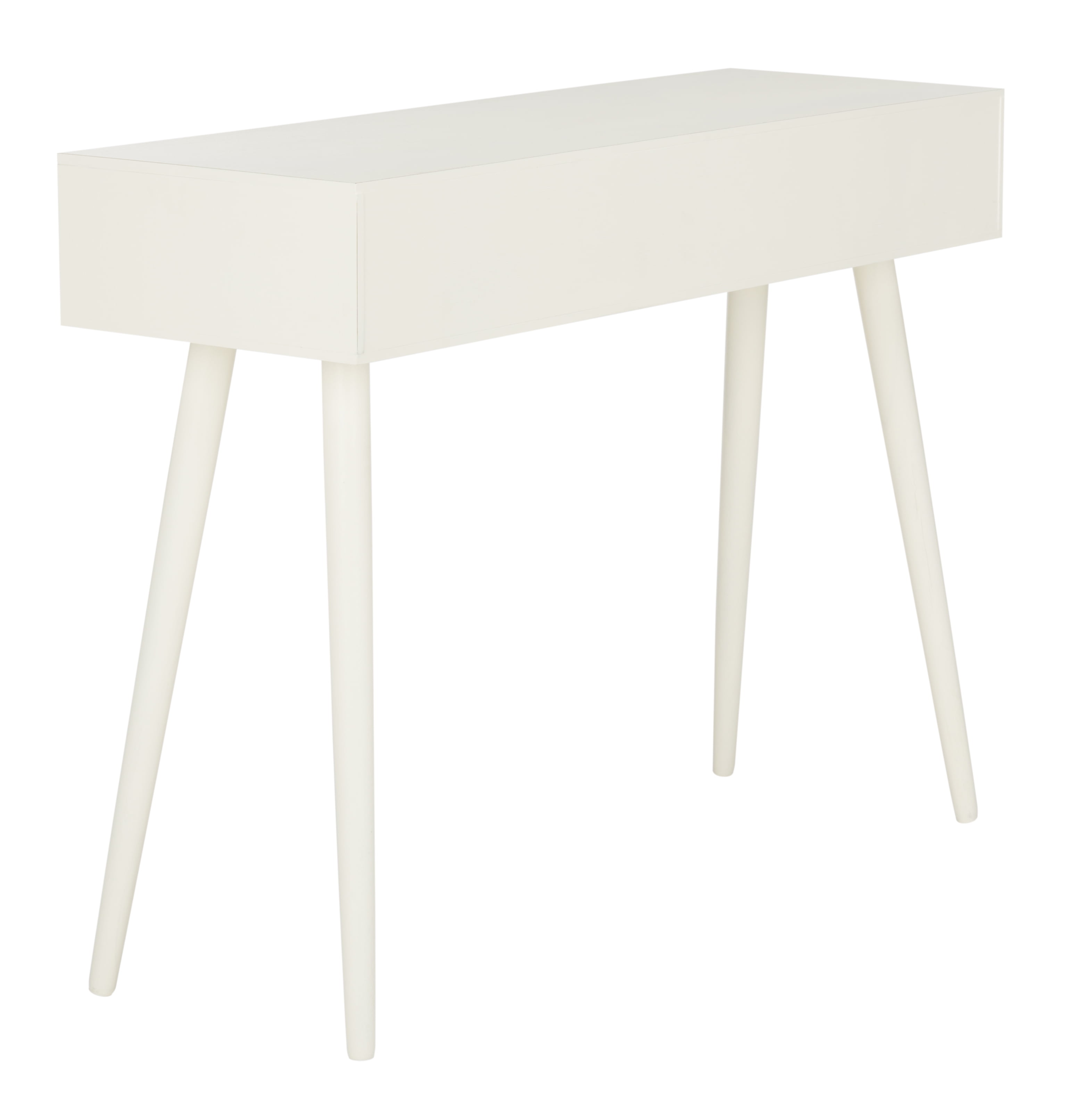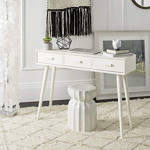 Shop Safavieh at . Save Money. Live Better. Safavieh Albus 3 Drawer Modern Solid Console Table, White On a tiny street in Saint-Germain is the home of the contemporary French designer whose bespoke furnishings inspired this modern Albus 3-drawer console table. Crafted with a durable pine wood blend, its distressed white hue was created by a special water-based paint. The Albus console is the perfect addition to your home for a stylish upgrade making it the perfect complement in your rooms