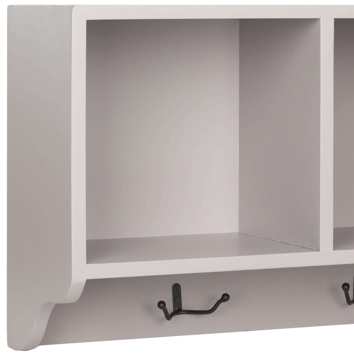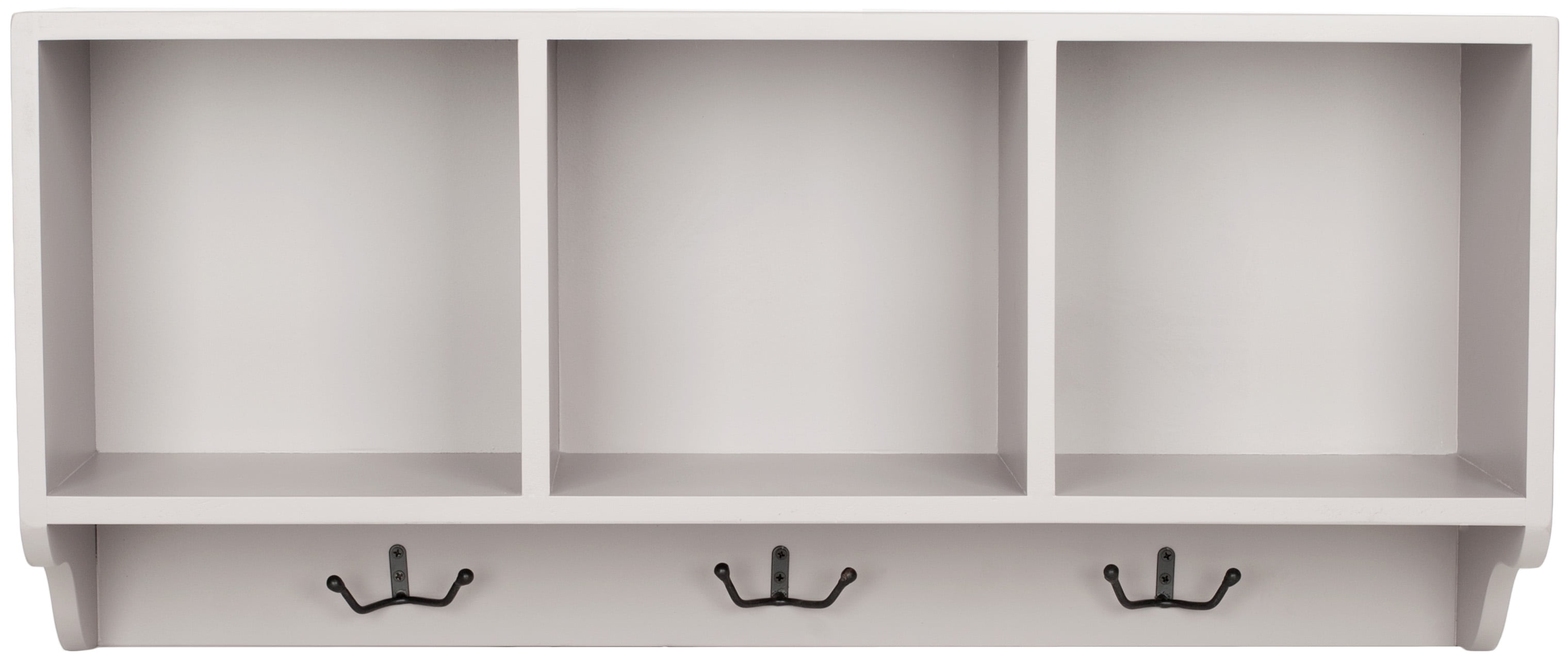 Contemporary design adds a chic look to your home Durable solid wood frame for long lasting longevity No assembly needed Color: Quartz Grey Item Dimension: 33.5 in. W x 9.1 in. D x 15 in. H Shelf Dimension: 10.4 in. W x 9.8 in. D x 8.7 in. H 3 shelves for ample storage Includes hooks for additional hanging Item Weight: 22 lbs Weight Capacity: 20 lbs each shelf Accessories in life style photo(s) not included Please note: The images and product dimensions on our website are as accurate as possible. Due to differences in computer monitors, some furniture colors may vary slightly. Lengths and widths may vary from the published dimensions. We do our best to provide you with an exact measurement, but please be advised that some variation exists. Wood is a natural material with variations of color shade, configuration, streaks, and grain structure. Each individual piece of Safavieh furniture has characteristic markings that will differ from photo and showroom samples. Regular attention and maintenance of fine furniture can ensure its beauty for years to come. Always use felt pads under all articles to prevent discoloration or softening of the lacquer. Plastic and rubber bases on items can discolor wood. Dust regularly with a soft, dry cloth. Never use oiled or treated cloths on lacquered finishes. Some finishes can be wiped with a damp (not wet) cloth, followed at once by rubbing with a dry cloth to remove fingerprints and smudges. For persistent spots, gently clean with a soft cloth and a solution of water and mild soap, make sure to wipe dry. Use adhesive felt pads, coasters and placemats to protect your furniture.