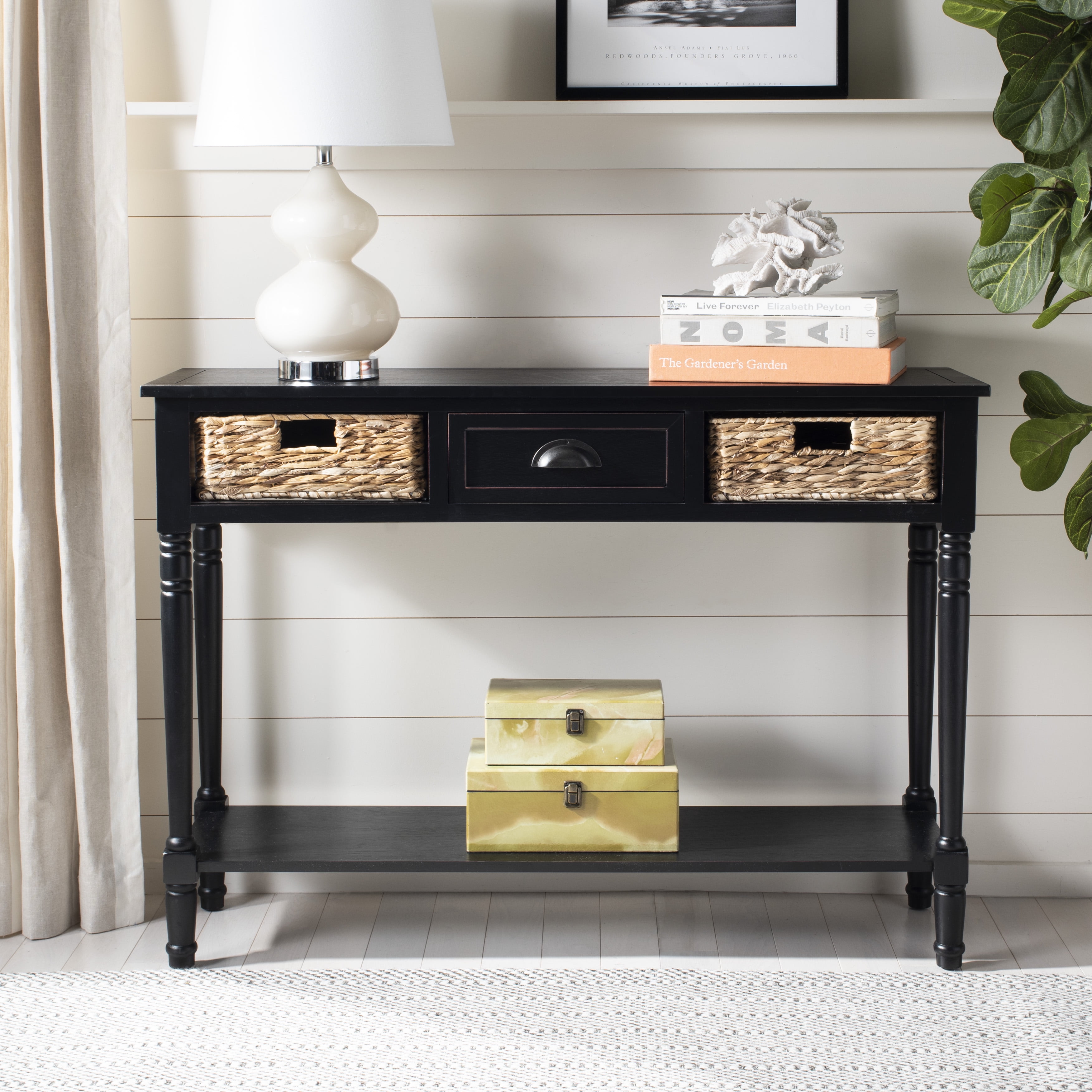 Shop SAFAVIEH at . Save Money. Live Better. SAFAVIEH Alyssa Rectangular Mid-Century Wood Top Console Table, Brown Bold and beautiful, this rectangular rustic midcentury wood top console table is a modern heirloom. Inspired classic American designers, its canyon grey finish and sinuous black hairpin legs lend instant character to the hallway, foyer or living room. For over 100 years, SAFAVIEH has set the standard for finely crafted rugs and home furnishings. Begin your rug, furniture, lighting, outdoor, and home decor search and discover over 100,000 SAFAVIEH products today.