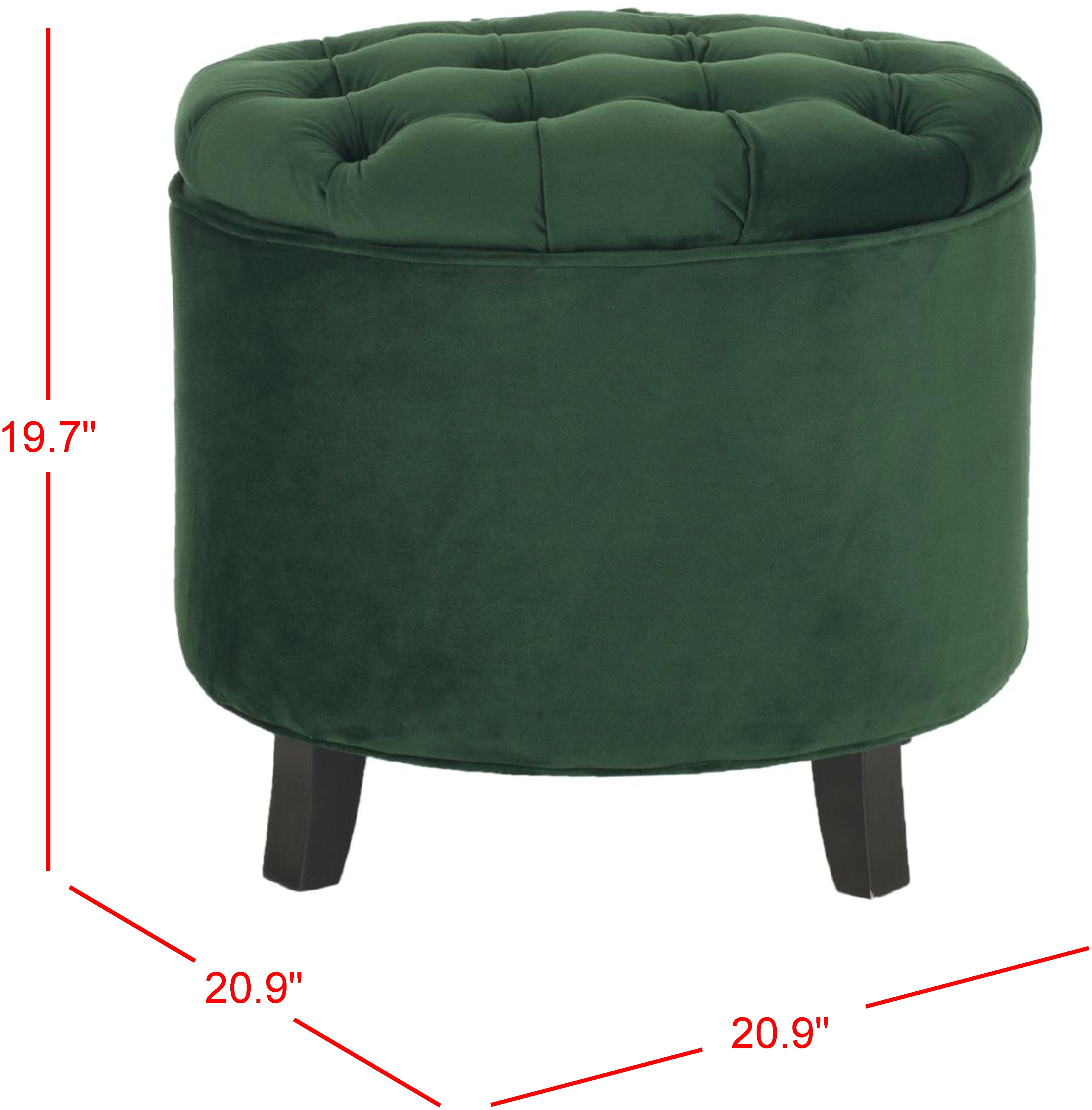 Shop SAFAVIEH at . Save Money. Live Better. SAFAVIEH Amelia Contemporary Glam Tufted Storage Ottoman, Emerald The fashion smart storage accessory, this Amelia Ottoman is ideal for any decor with its button tufted top and oak legs in an espresso finish. The emerald cotton velvet makes Amelia ultra comfortable and effortlessly chic. For over 100 years, SAFAVIEH has set the standard for finely crafted rugs and home furnishings. Begin your rug, furniture, lighting, outdoor, and home decor search and discover over 100,000 SAFAVIEH products today.