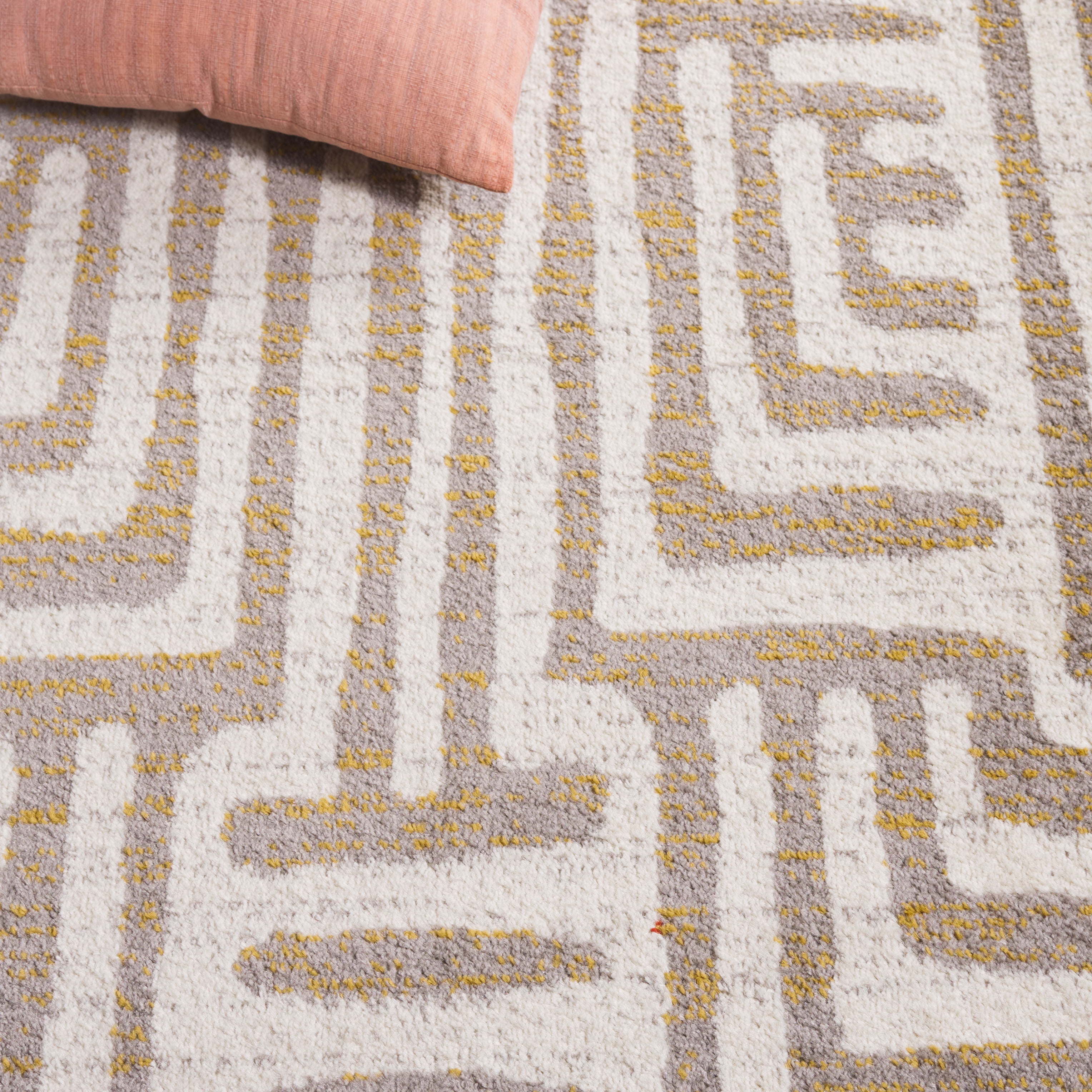SAFAVIEH Amsterdam Elvan Geometric Area Rug, Ivory/Mauve, 6’7″ x 6’7″ Round
