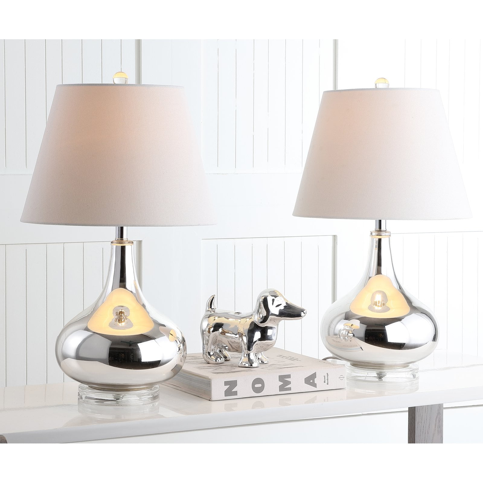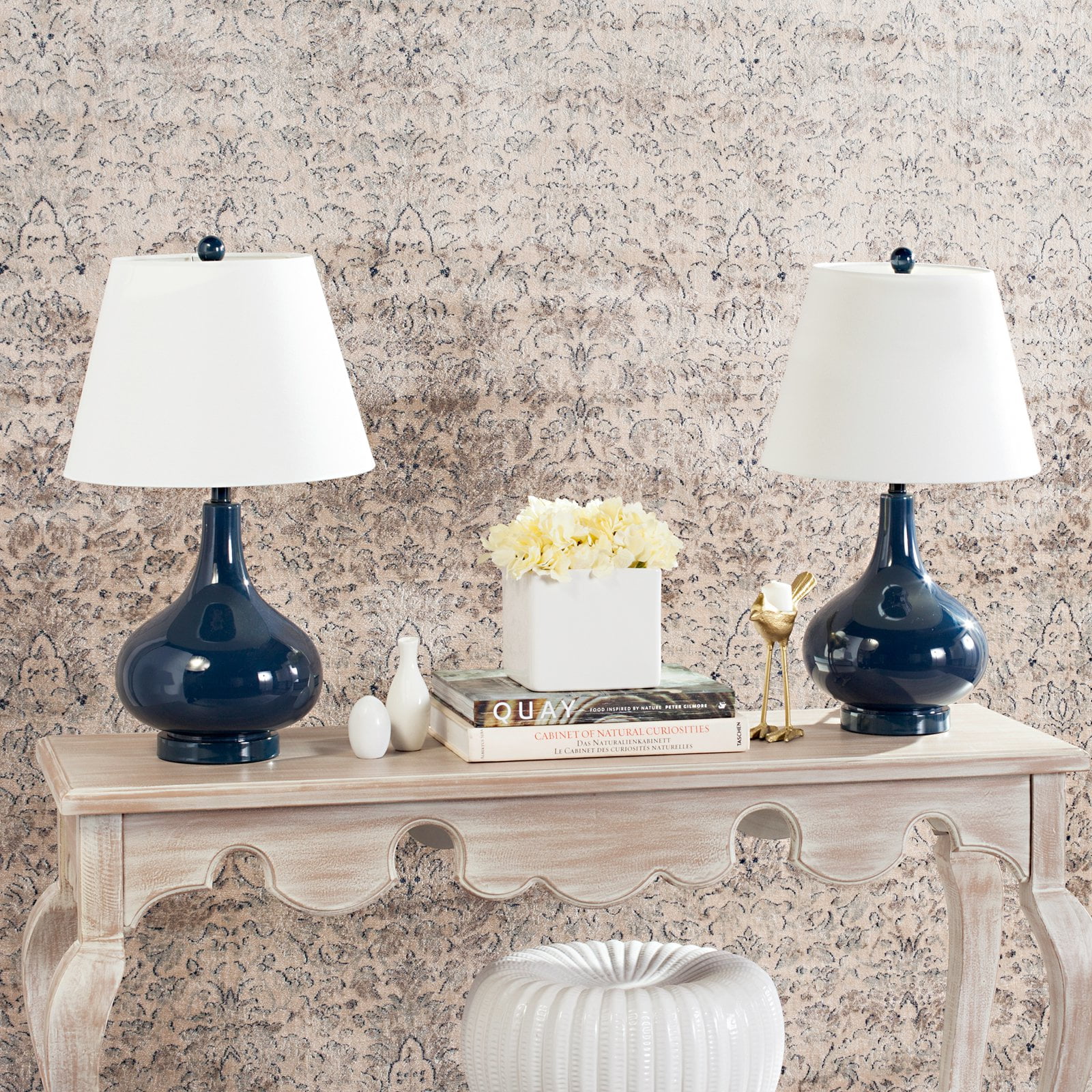 Shop Safavieh at . Save Money. Live Better. SAFAVIEH Amy 24 in. 2-Lt. White Glass Table Lamp with Off-white Cotton Shade, Set of 2 Reflect an aura of sophistication with the clean white Amy Gourd Glass Lamp (set of two) with matching finial, base, and neck. Amy is complemented with an elegantly tapered cotton shade that softly illuminates any room.