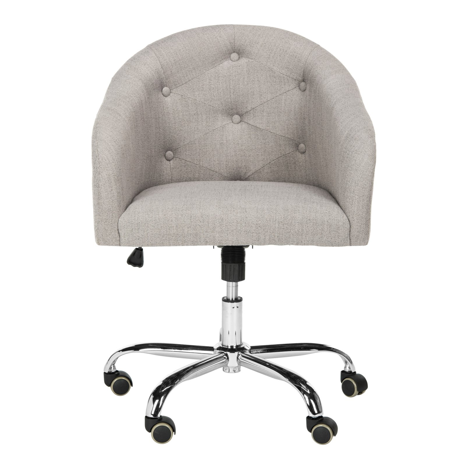 Shop SAFAVIEH at . Save Money. Live Better. SAFAVIEH Amy Tufted Chrome Leg Swivel Office Chair, Grey The ultimate office perk, this tufted grey linen chrome leg swivel office chair was designed to add style and substance to the home office. Inspired by soft, modern Belgian style, its innovative swivel mechanism and sleek casters make multi tasking a breeze. For over 100 years, SAFAVIEH has set the standard for finely crafted rugs and home furnishings. Begin your rug, furniture, lighting, outdoor, and home decor search and discover over 100,000 SAFAVIEH products today.