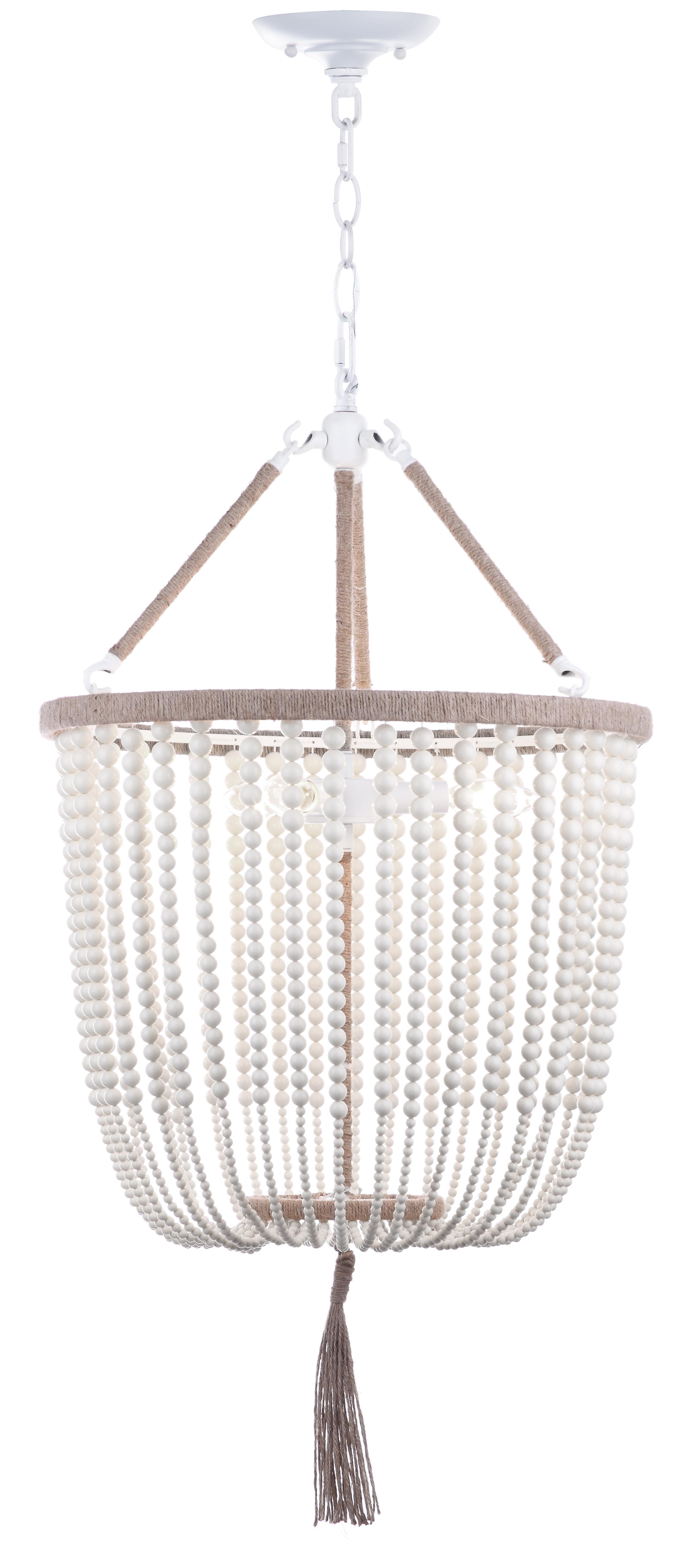 SAFAVIEH Angie Beads Pendant Lamp | Cream | Inspired by the handcrafted vessels in Budapest�s top luxury hotel, this adjustable 3 light beaded pendant lamp radiates chic boho style. Its posh strands create informal elegance ideal for any taste, and its luxe tassel makes it a designer must have. Begin your rug, furniture, lighting, outdoor, and home decor search and discover over 100,000 SAFAVIEH products today.