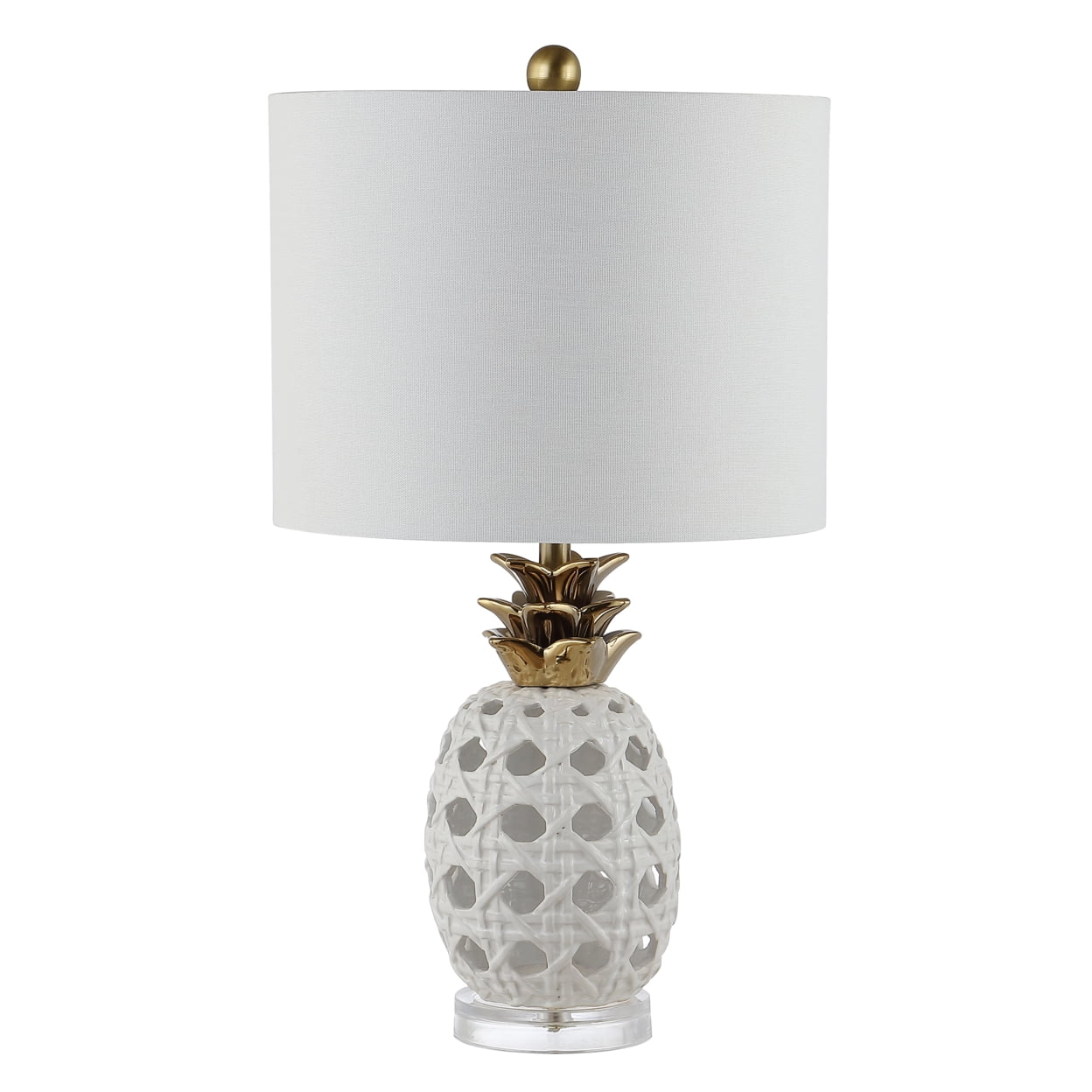 Contemporary design adds a chic look to your home Durable glass frame for long lasting longevity Easy to clean and maintain Minor assembly needed Color: Cream Shade Color: White Item Dimension: 14 in. W x 14 in. D x 24 in. H Shade Material: 100% Cotton Shade Height: 10 in. Shade Bottom Dimension: 14 in. W x 14 in. L Shade Top Dimension: 14 in. W x 14 in. L Traditional Harp Style Harp Color: Gold Harp Height: 7.5 in. Cord Color: Clear Cord Length: 60 in. Lamp Body Dimension: 9.625 in. W x 9.625 in. D x 9.5 in. H Item Weight: 3.39 lbs Lamp Certification: UL Light Bulb Base Type: E26 Screw Terminal Switch Mechanism: ON/OFF Type of Bulb Included: LED A19 9W Max Wattage: 100 Lumen: 805 Quantity of Bulb(s): 2 Accessories in life style photo(s) not included Please note: The images and product dimensions on our website are as accurate as possible. Due to differences in computer monitors, some item’s color may vary slightly. Before cleaning any lamp shade or fixture, disconnect the power source. Wipe with a soft, dry cloth. Avoid the use of chemicals and household cleaners as they may damage the finish.