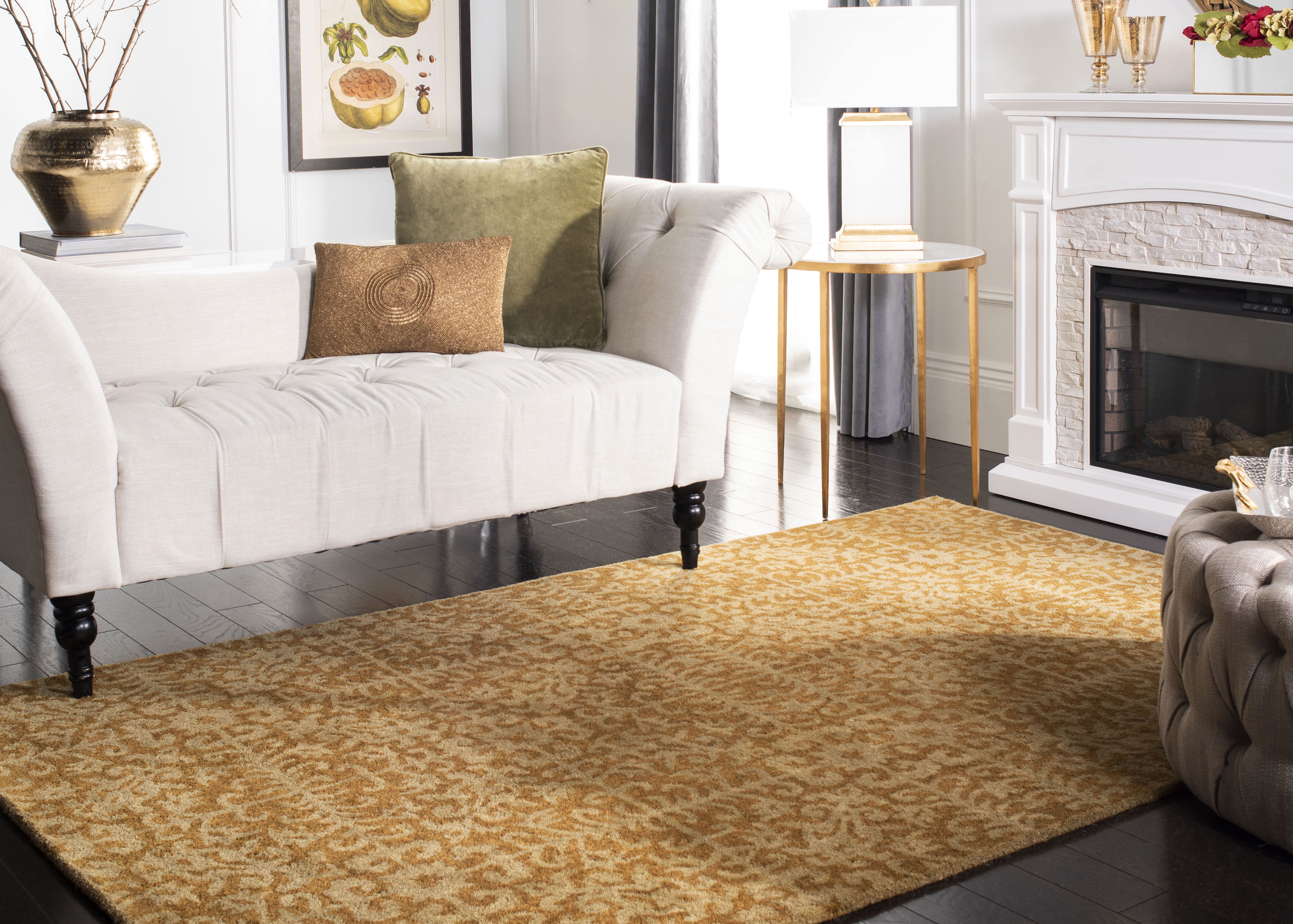 Color: Gold/Beige Size: 8′ x 8′ Square Hand Tufted in India Pile Height: 0.5 in. Cotton backing, rug pad (sold separately) recommended to help prevent shifting and sliding 100% Wool Pile Stylish addition for any room Accessories in lifestyle photos not included New wool rugs shed as a natural consequence of how they are made; vacuum a new wool rug 1-2 times a week for the first few weeks using a low pressure vacuum cleaner without beater bars; vacuum in the direction of the pile, not against it; do not pull loose ends or stray loops, clip them with scissors to remove Vacuum (preferably one without beater bars) regularly and spot clean; for hard-to-remove stains, professional rug cleaning is recommended; rotating your rugs every 3-6 months will protect against uneven wear from foot traffic and furniture weight Use rug protectors under the legs of heavy furniture to avoid flattening piles Avoid direct sunlight as it will cause the colors in your area rug to fade over time; place your area rug away from direct sunlight whenever possible For an instant decorating makeover, this area rug is one of the easiest and most fashionable ways to refresh a room with character and style. Please note: The images and product dimensions on our website are as accurate as possible. Due to differences in computer monitors, some rug colors may vary slightly. Lengths and widths may vary from the published dimensions. We do our best to provide you with an exact measurement, but please be advised that some variation exists. Patterns may vary slightly according to shape and size selected. Packing and shipping of your rug may cause temporary creases; these surface waves are not imperfections or damages and will gradually recede; back-rolling or reverse rolling is the fastest and easiest way to remove creases in your area rug; allow ample time for your rug to settle, these creases and waves will normally flatten out Available in multiple color and sizes For carpet-to-carpet use, we recommend placing a hold pad in-between for protection
