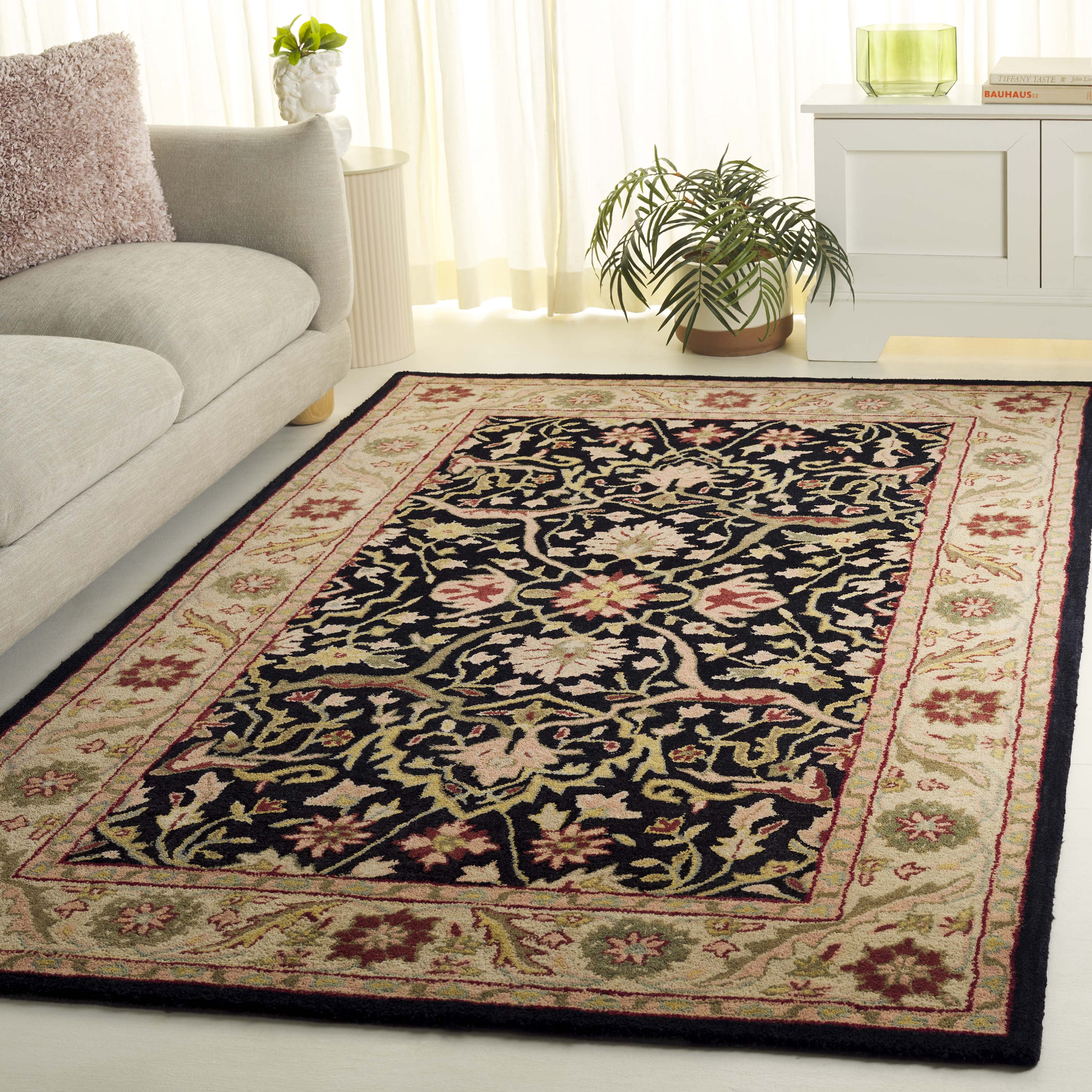 SAFAVIEH Antiquity Toireasa Oriental Wool Area Rug, Black, 4′ x 6′