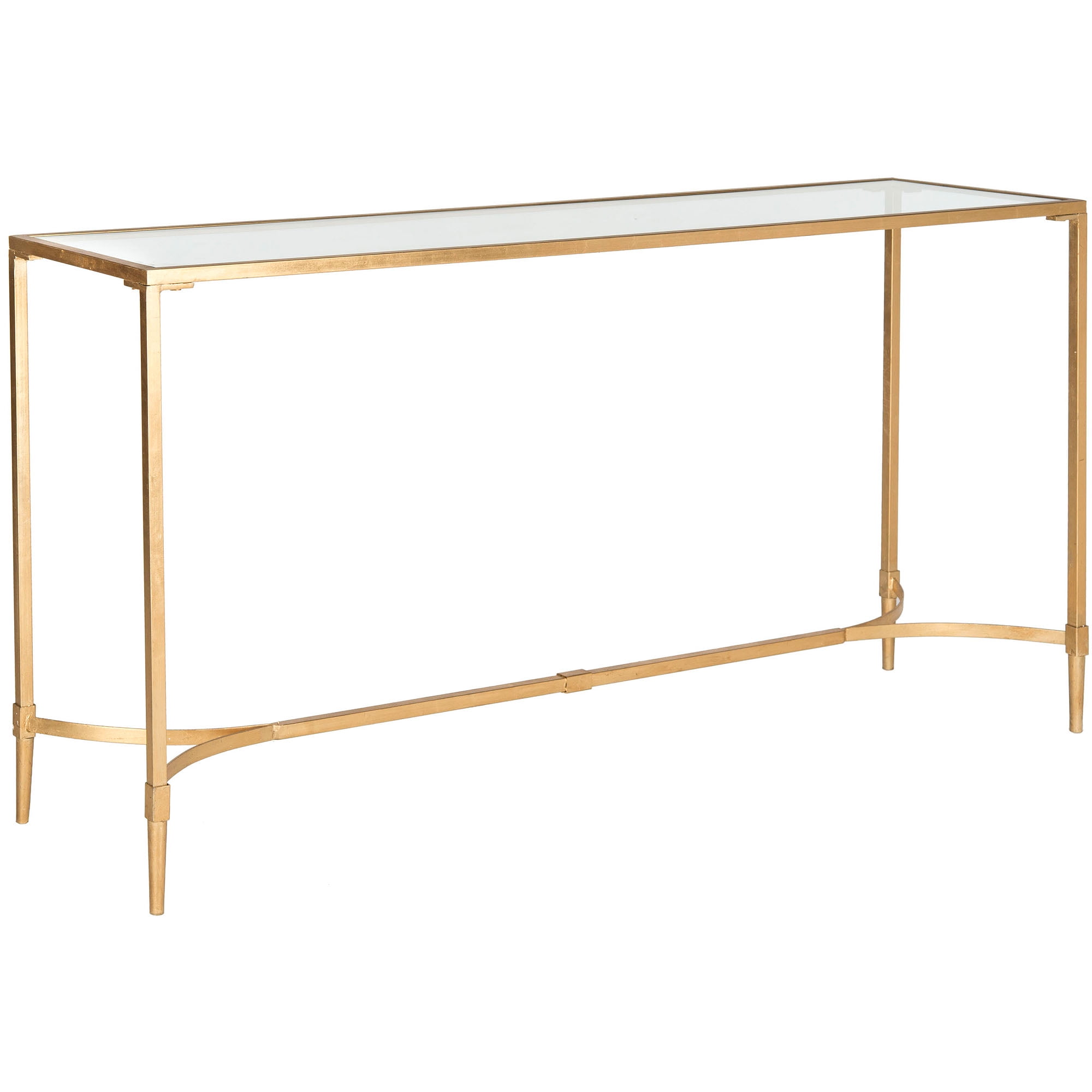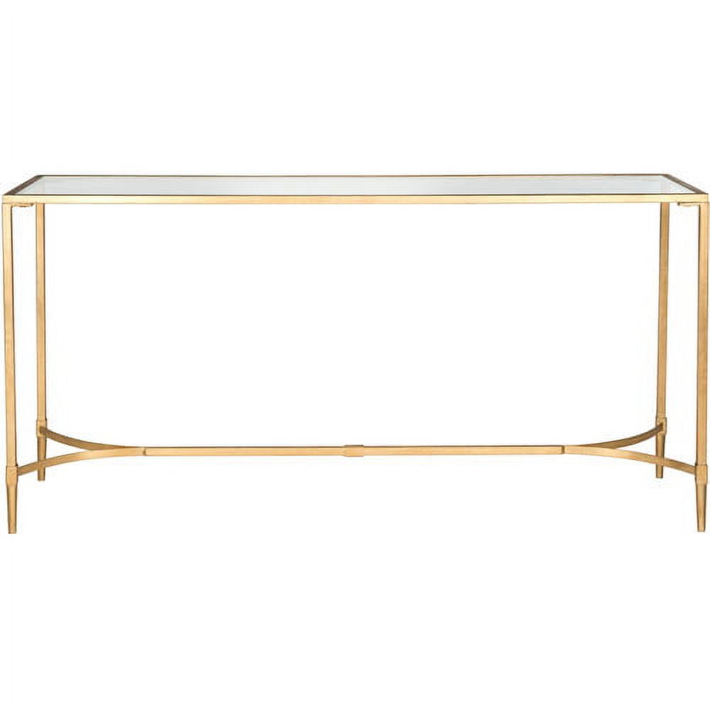 Safavieh Antwan Console, Gold/Tempered Glass Top: Contemporary design adds a chic look to your home Minor assembly needed Durable frame for long-lasting longevity Easy to clean and care for Item dimensions: 63″W x 16″D x 32″H