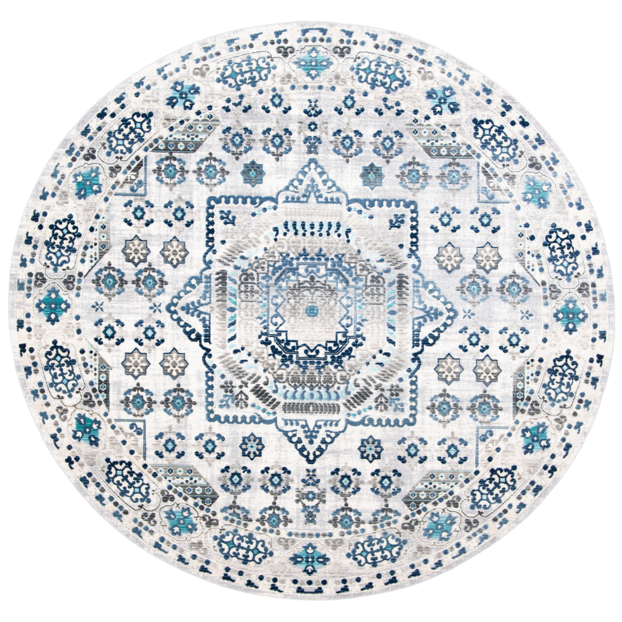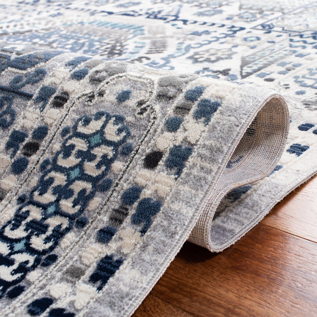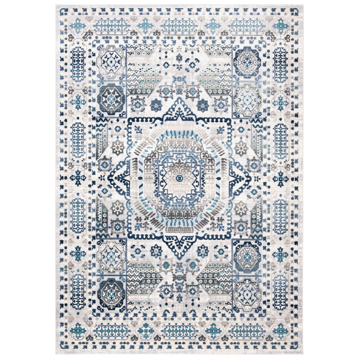 Color: Grey/Cream Size: 5’1″ x 7’6″ Power Loomed in Turkey Pile Height: 0.25 in. Cotton backing, rug pad (sold separately) recommended to help prevent shifting and sliding Polypropylene & Polyester blend Stylish addition for any room Accessories in lifestyle photos not included Vacuum regularly (preferably one without beater bars) and spot clean; for hard-to-remove stains, professional rug cleaning is recommended; rotating your rugs every 3-6 months will protect against uneven wear from foot traffic and furniture weight Use rug protectors under the legs of heavy furniture to avoid flattening piles Avoid direct sunlight as it will cause the colors in your area rug to fade over time; place your area rug away from direct sunlight whenever possible For an instant decorating makeover, this area rug is one of the easiest and most fashionable ways to refresh a room with character and style. Please note: The images and product dimensions on our website are as accurate as possible. Due to differences in computer monitors, some rug colors may vary slightly. Lengths and widths may vary from the published dimensions. We do our best to provide you with an exact measurement, but please be advised that some variation exists. Patterns may vary slightly according to shape and size selected. Packing and shipping of your rug may cause temporary creases; these surface waves are not imperfections or damages and will gradually recede; back-rolling or reverse rolling is the fastest and easiest way to remove creases in your area rug; allow ample time for your rug to settle, these creases and waves will normally flatten out Available in multiple sizes For carpet-to-carpet use, we recommend placing a hold pad in-between for protection