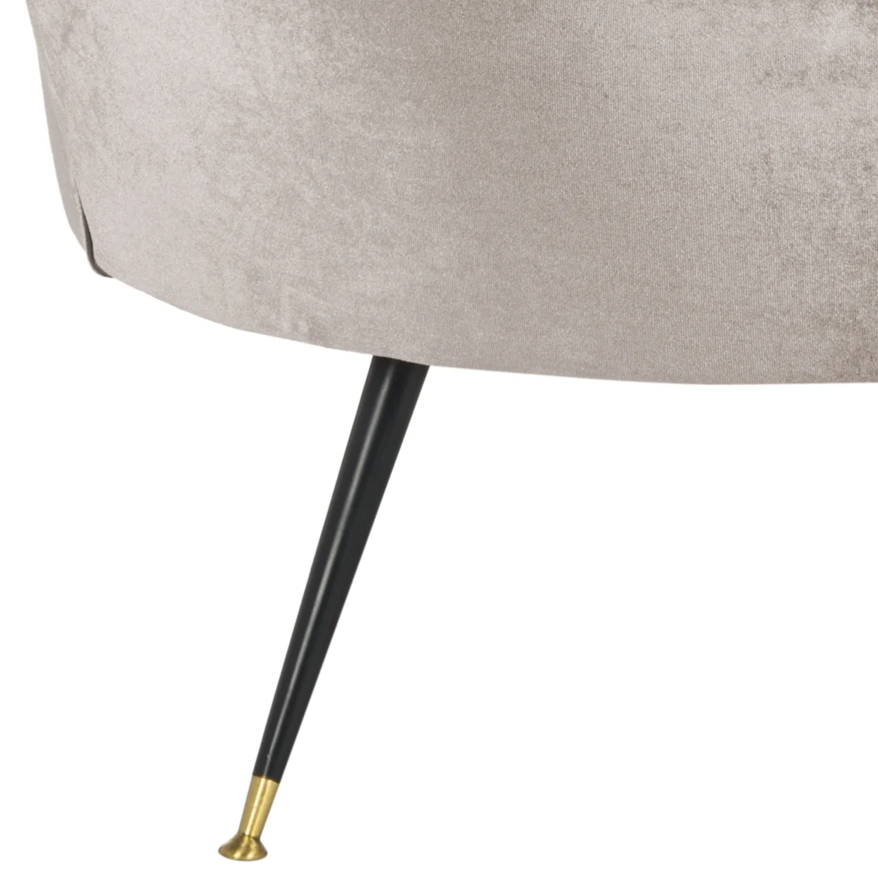 Dimensions: 32W x 33D x 31.5H in. Internal frame of eucalyptus wood Velvet upholstery Select an available color option Black metal legs with gold ferrules Weight Capacity: 300 lbs.