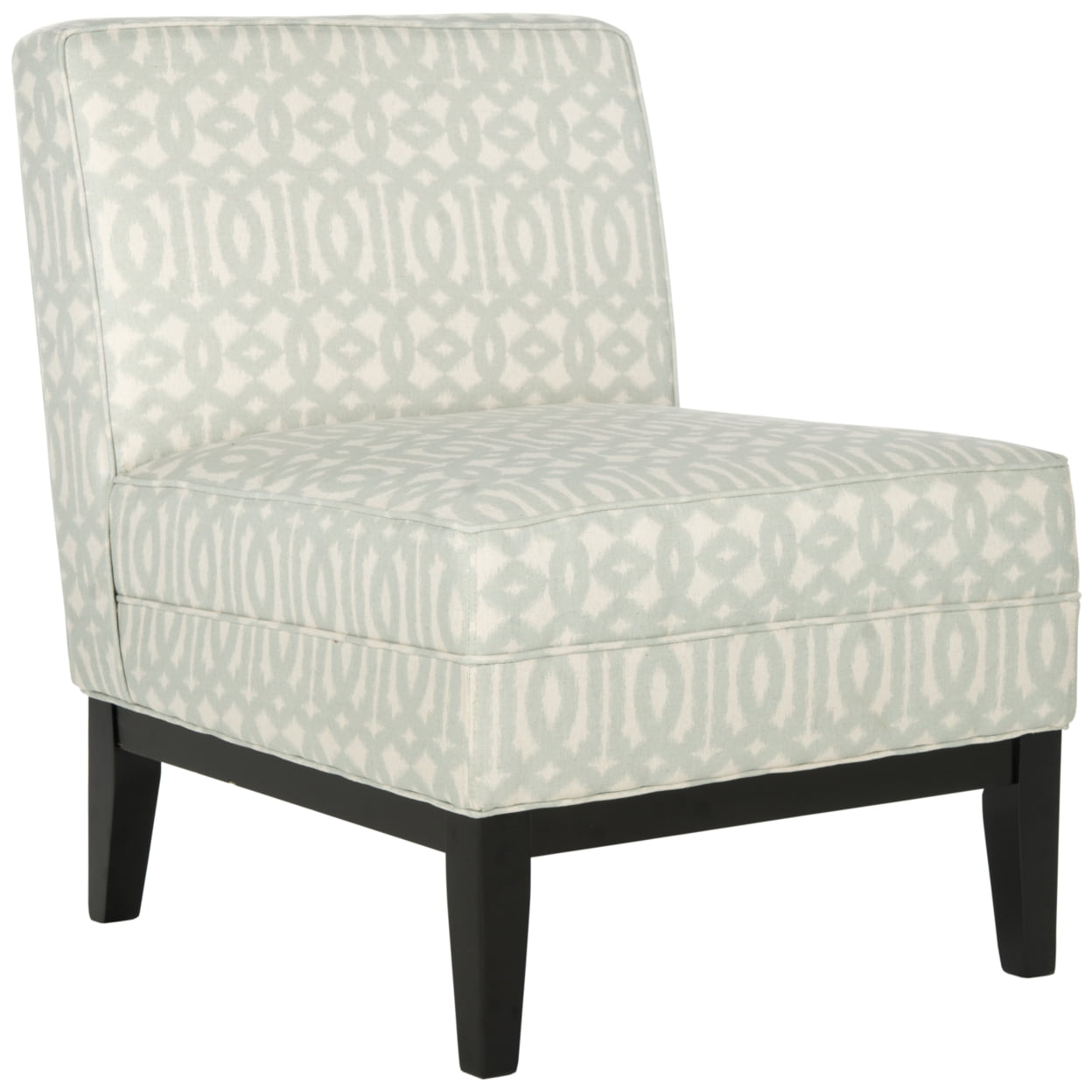 SAFAVIEH Armond Chair Silver / Cream Styled for maximum impact in minimal space, the Armond Chair marries form and function. The chic silver and cream Moroccan inspired pattern is printed on a crisp linen blend, and birch legs in an espresso finish add fashion flair. Armond looks excellent in pairs or as a solo reading chair. For over 100 years, SAFAVIEH has set the standard for finely crafted rugs and home furnishings. From coveted fresh and trendy designs to timeless heirloom-quality pieces, expressing your unique personal style has never been easier. Begin your rug, furniture, lighting, outdoor, and home decor search and discover over 100,000 SAFAVIEH products today.