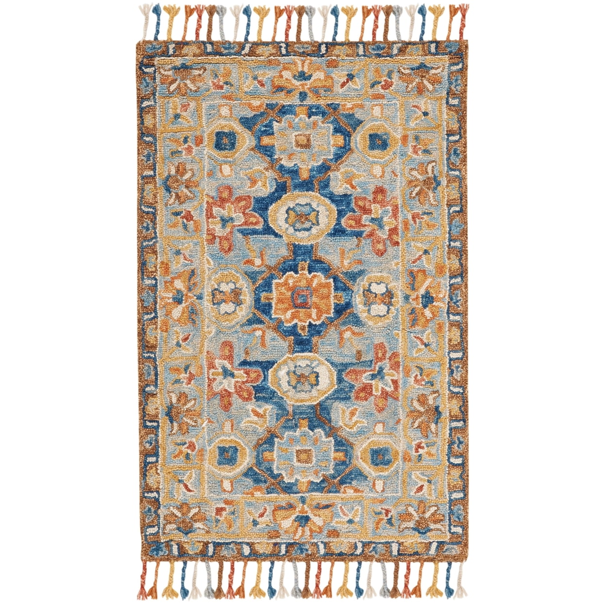 SAFAVIEH Aspen Andi Southwestern Wool Area Rug, Grey/Navy, 5′ x 5′ Square