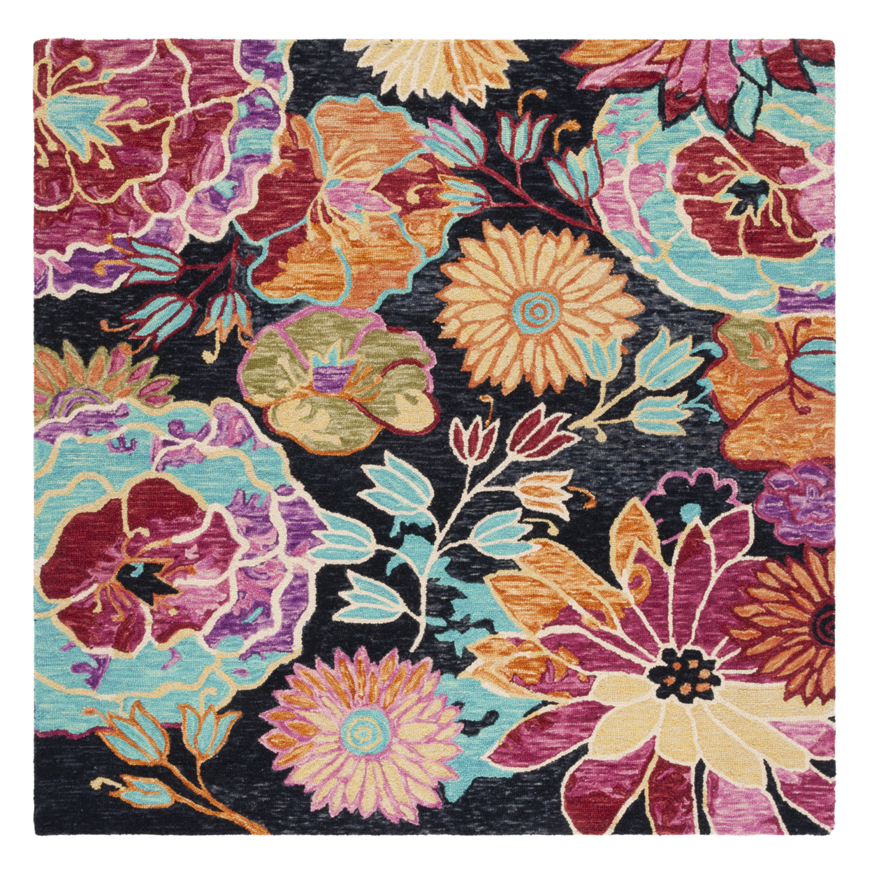 SAFAVIEH Aspen Candelario Floral Wool Area Rug, Charcoal/Blue, 5′ x 8′