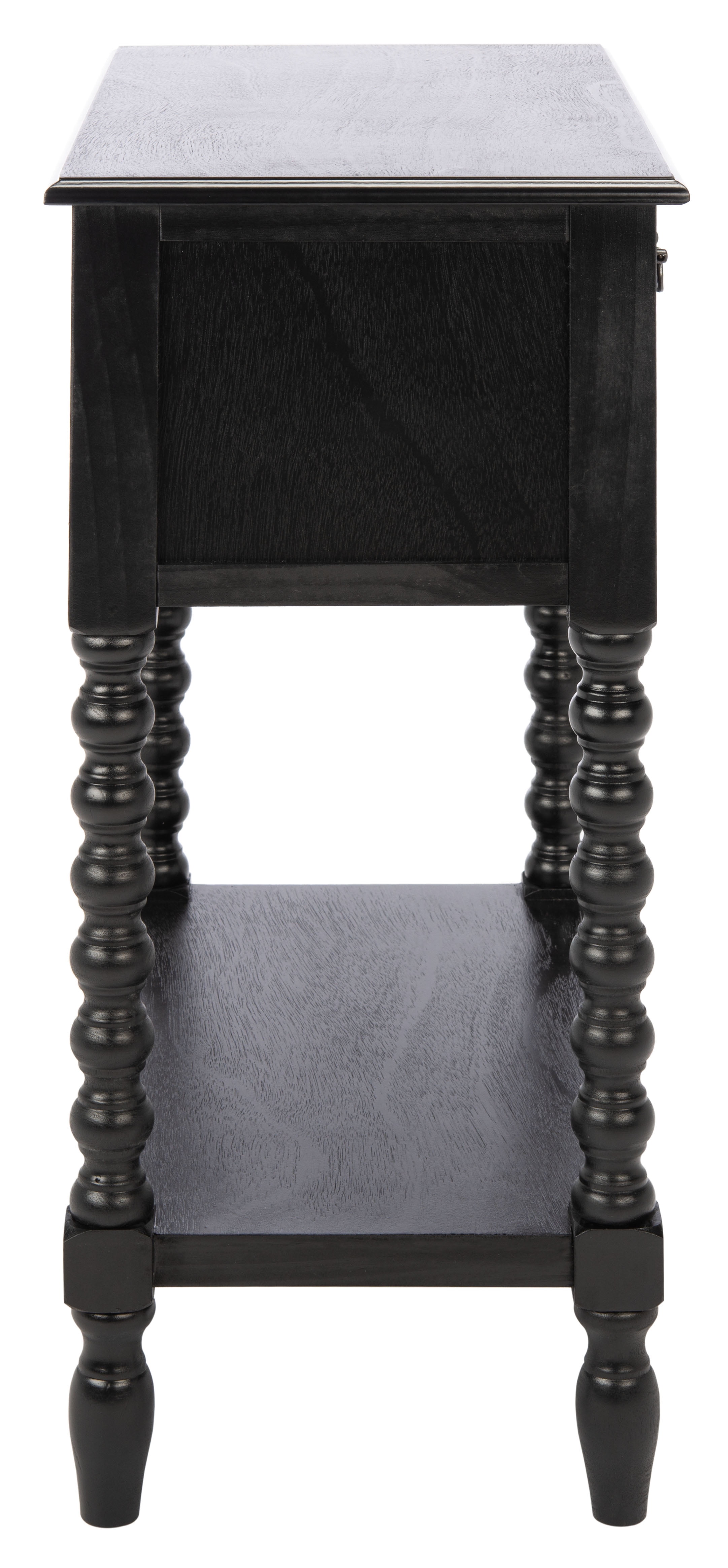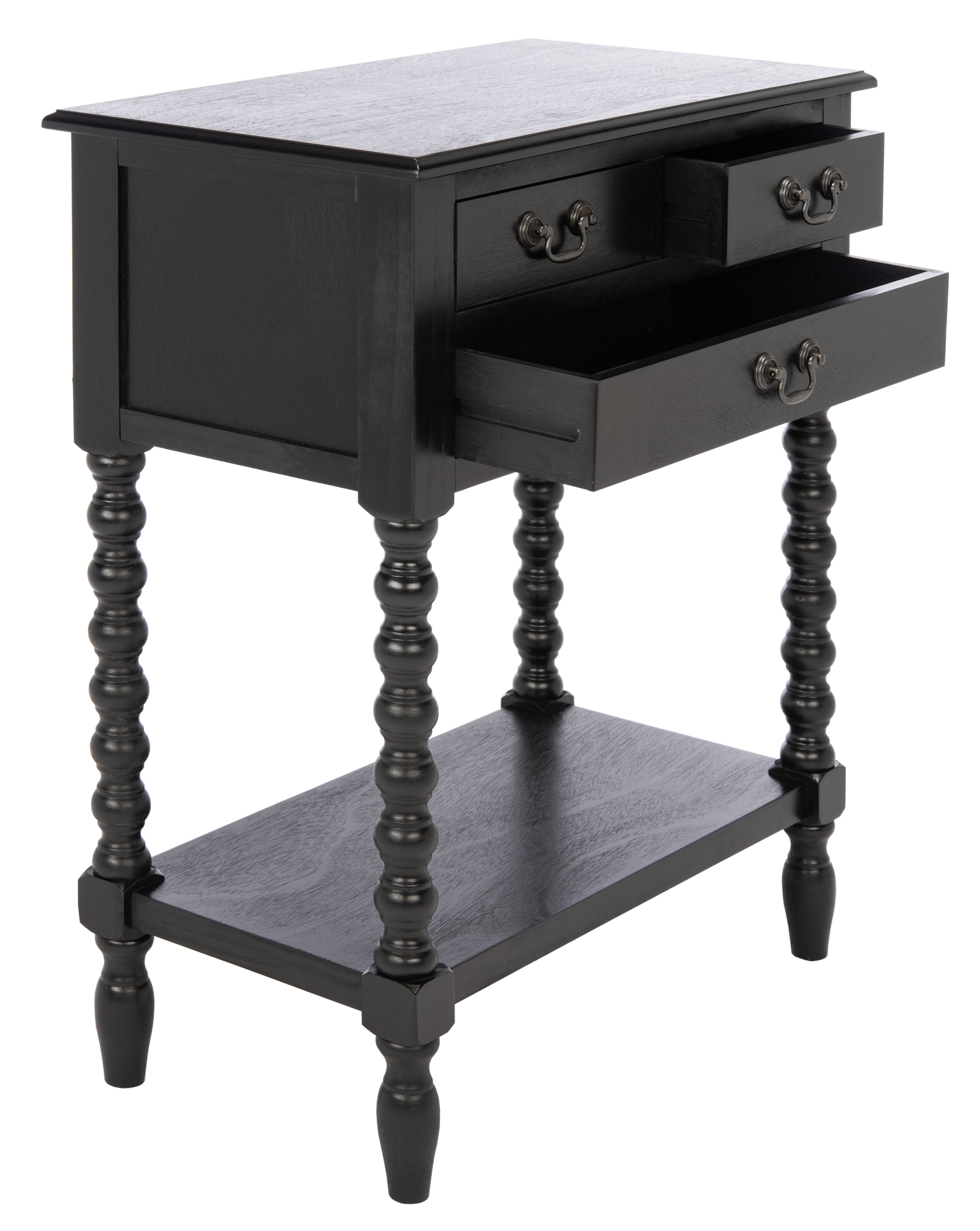 Shop Safavieh at . Save Money. Live Better. SAFAVIEH Athena French 3-Drawer Black Wood Rectangle Console Table (23.5 in. W x 13 in. D x 29.5 in. H) Bring farmhouse charm to any classic contemporary décor with this Athena Console Table. Athena’s modernized ball turned legs are beautifully highlighted by its sleek black finish, while an open bottom shelf and three slim drawers provide ample storage and display space.