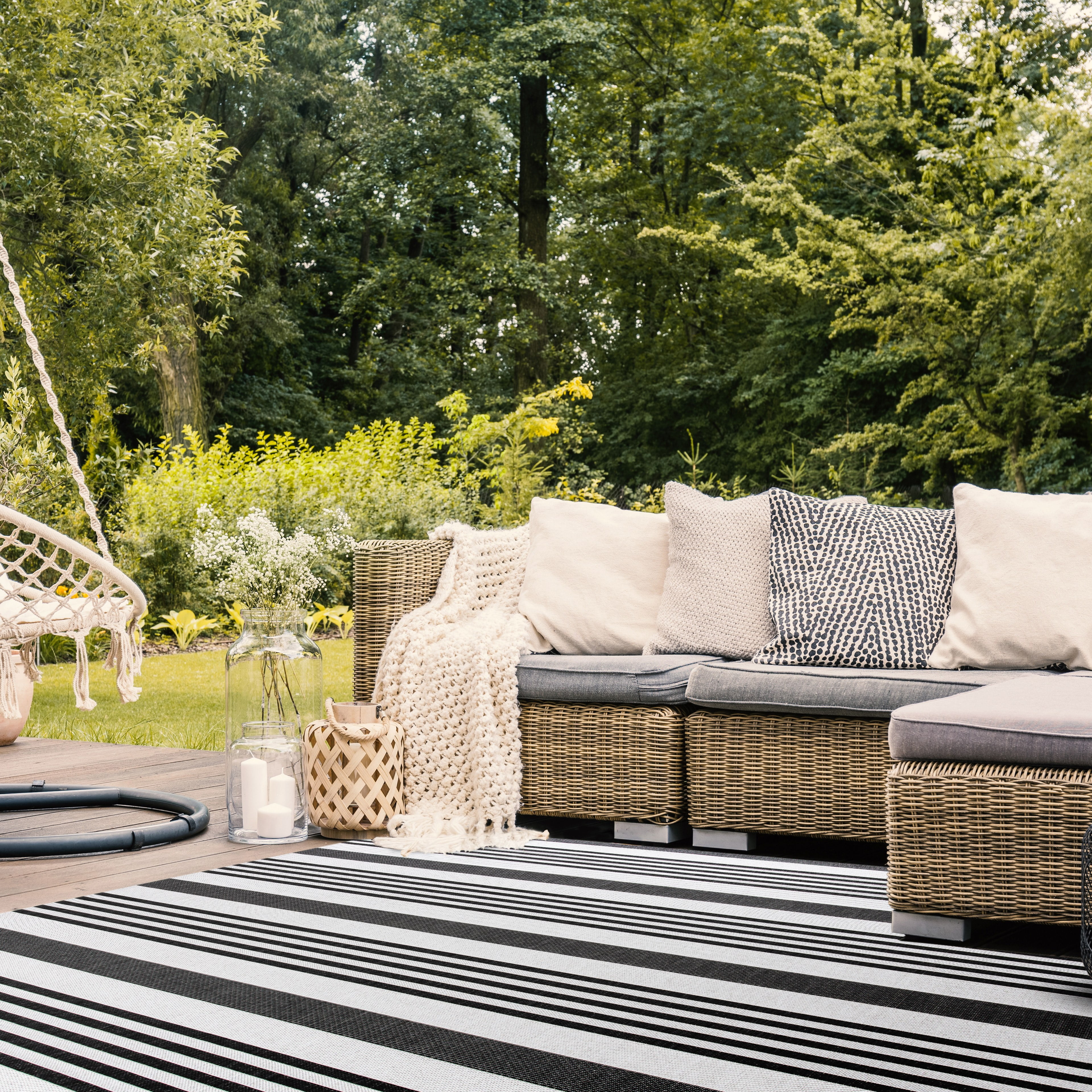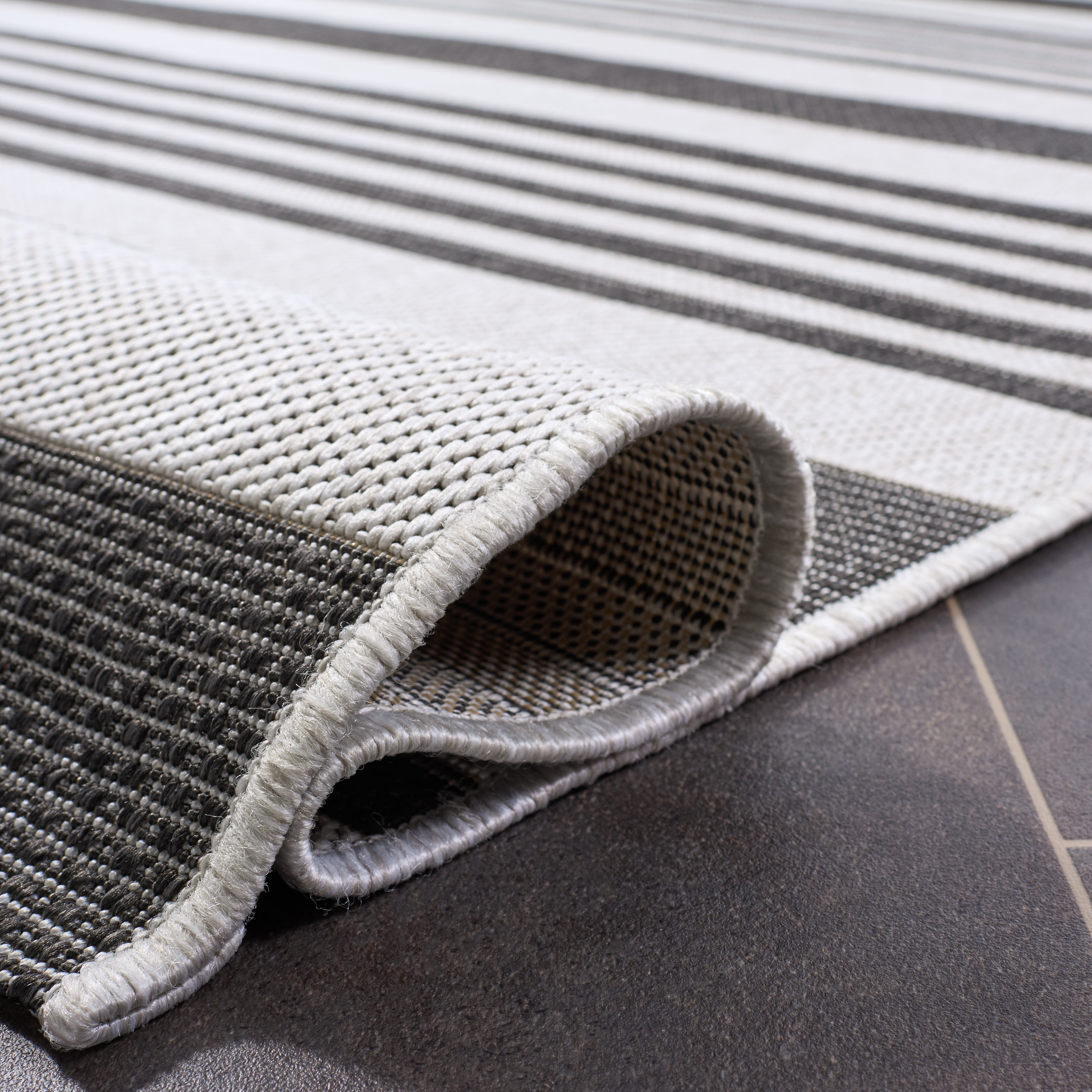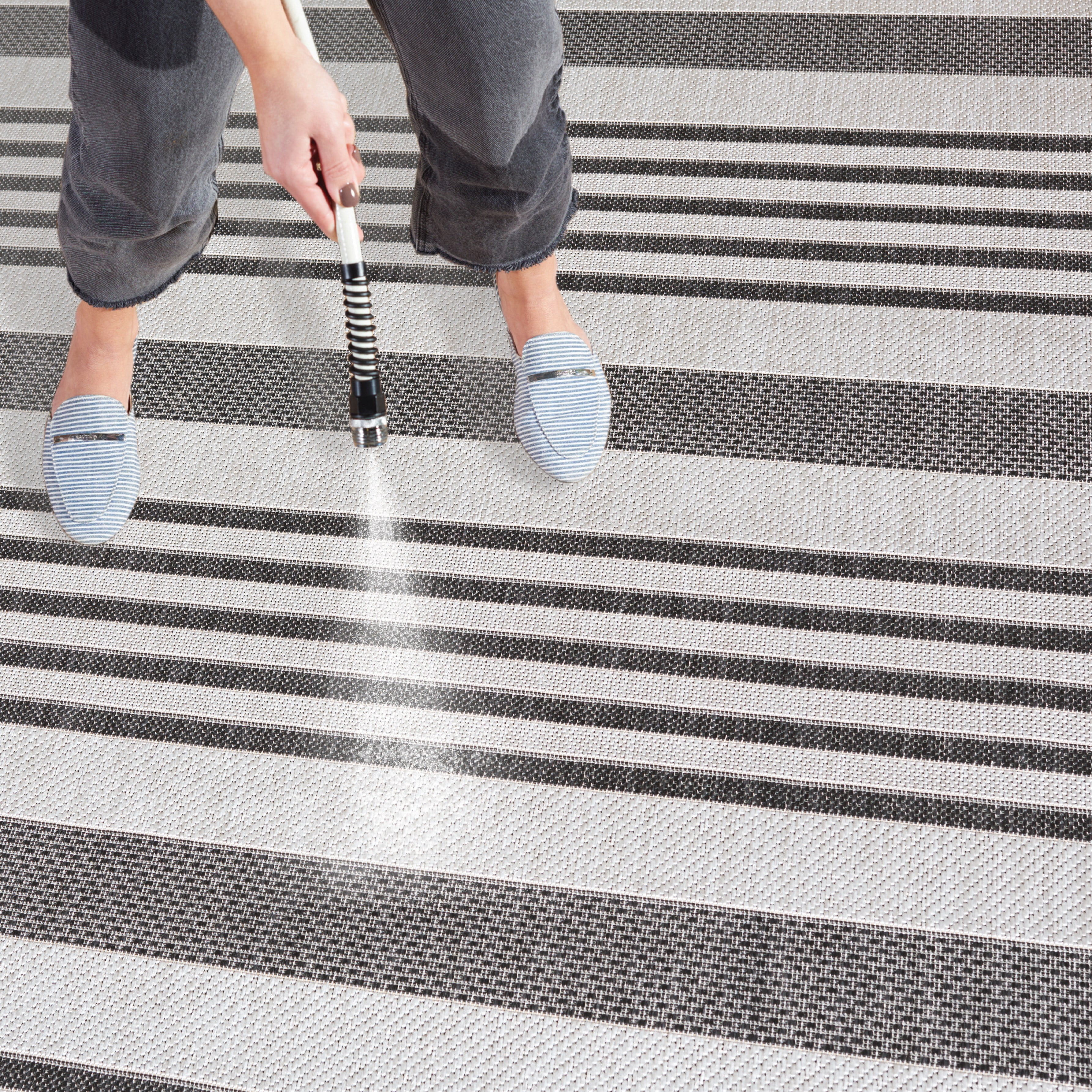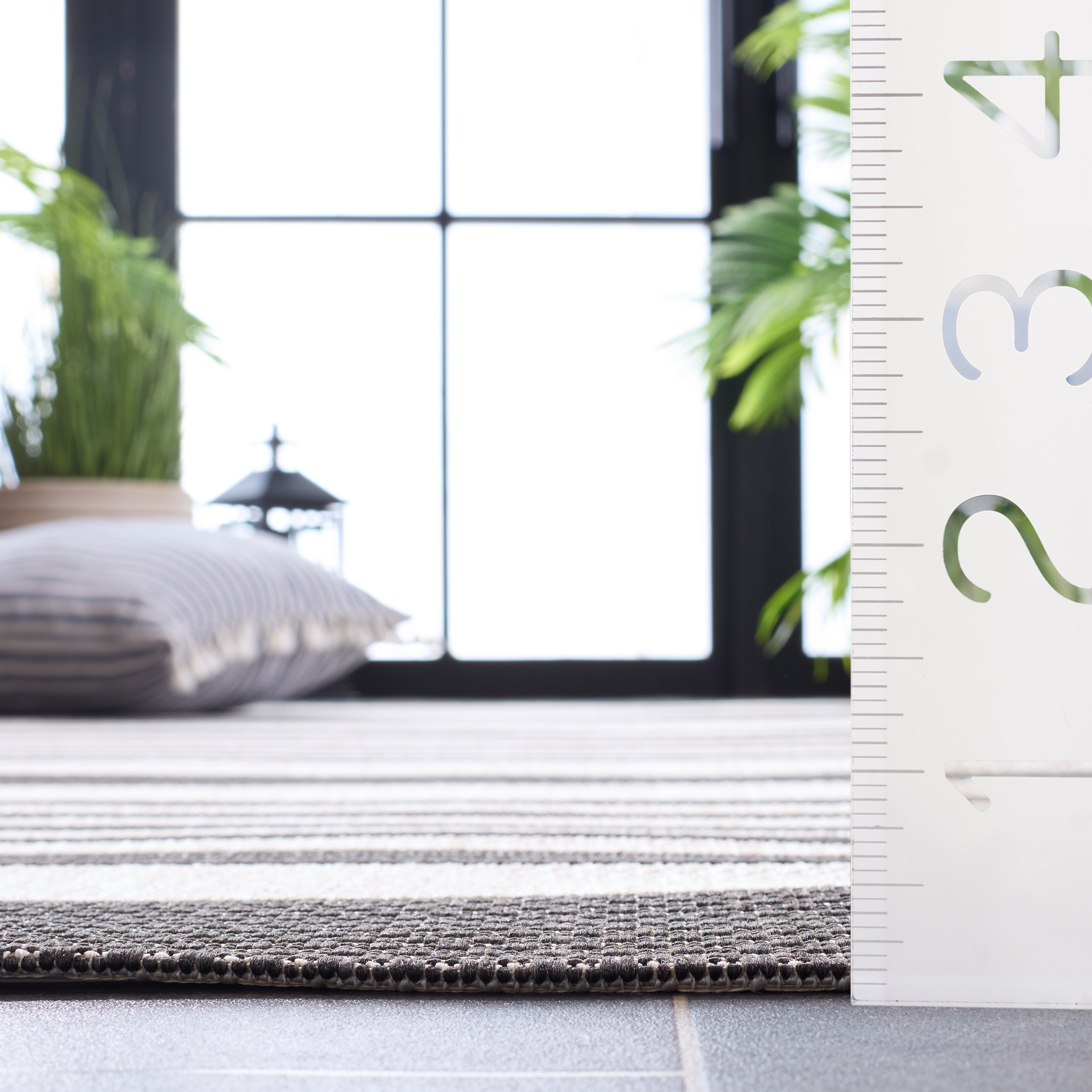 Shop more SAFAVIEH Outdoor Rugs at . SAFAVIEH Beach House Rug Collection SAFAVIEH Beach House Henry Striped Indoor/Outdoor Area Rug, Light Grey/Charcoal, 8′ x 10′ Beach House outdoor rugs blend interior design elegance with practical functionality, making them ideal for leisure living spaces and high-traffic areas. Crafted from durable synthetic yarns, these rugs resist stains, mold, mildew, and fading. Whether indoors or on your outdoor deck, Beach House rugs maintain their allure and durability throughout every season. Their timeless motifs and classic-contemporary styling complement any decor, while easy-care cleaning ensures they remain a practical and stylish investment for your home.