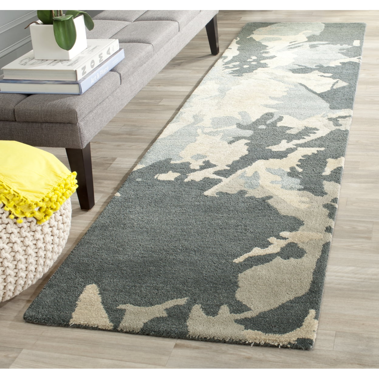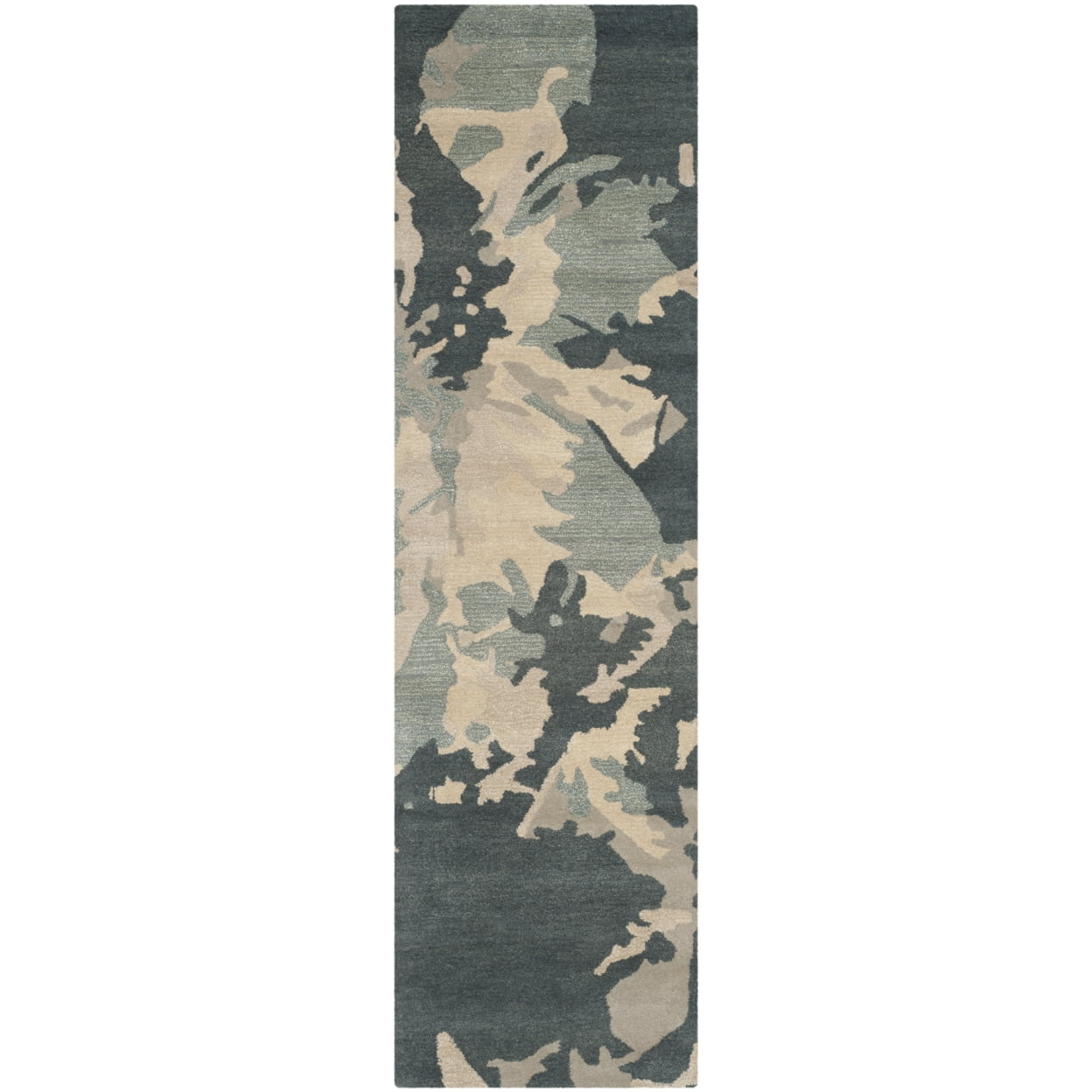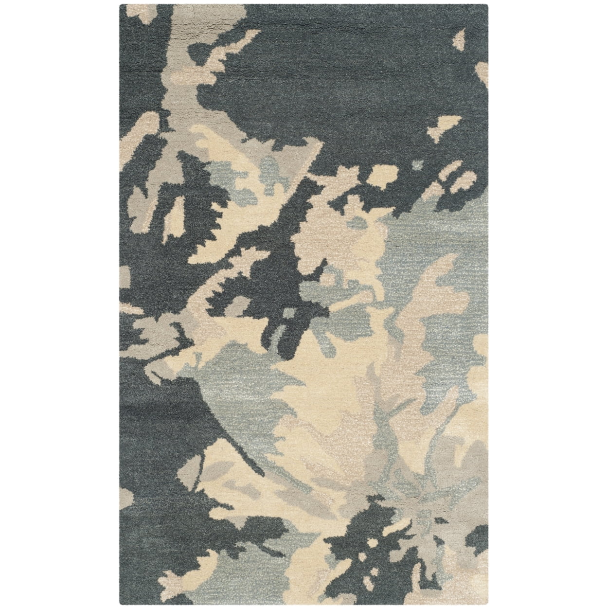 SAFAVIEH Bella Faye Abstract Camo Wool Area Rug, Steel Blue, 3′ x 5′