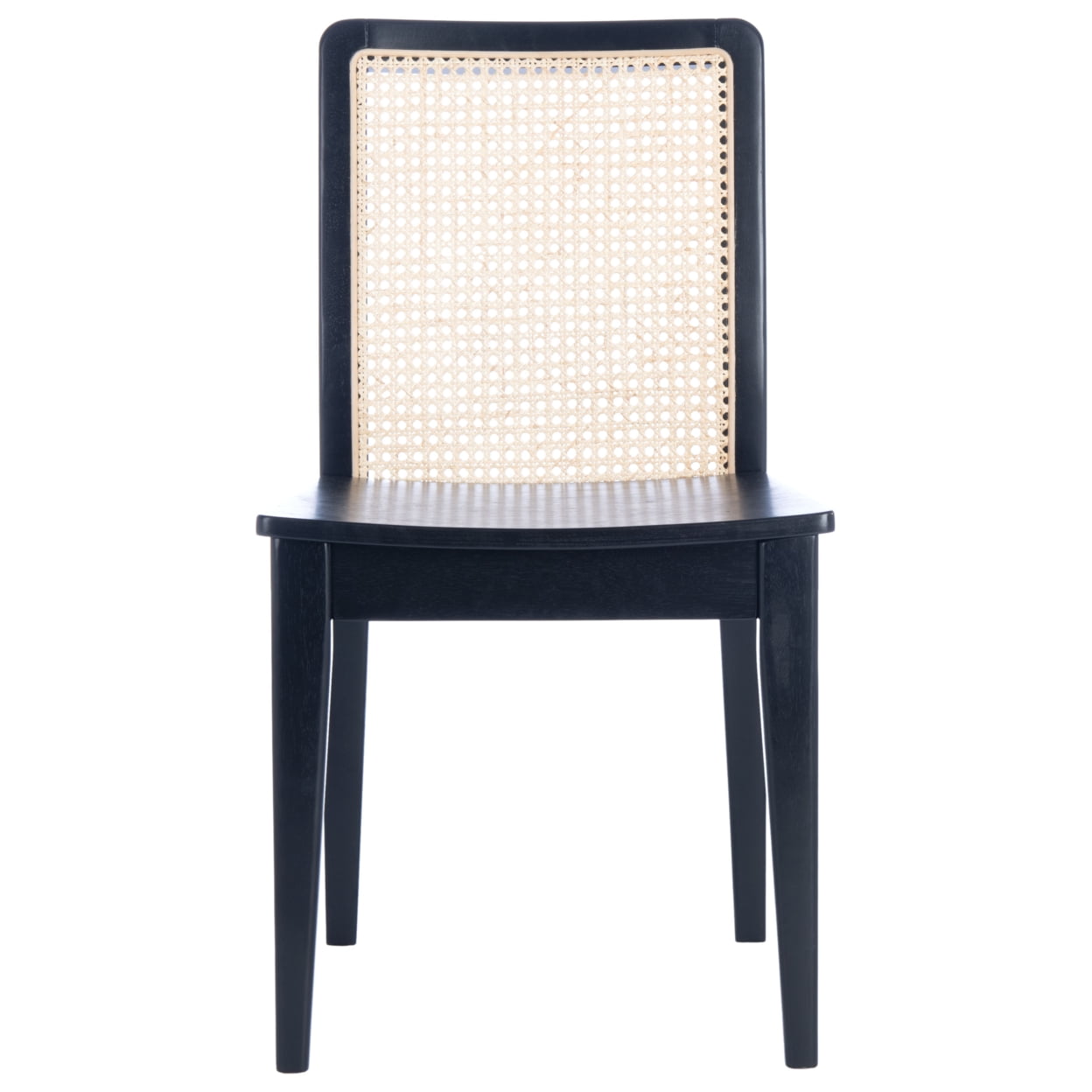 Shop SAFAVIEH at . Save Money. Live Better. SAFAVIEH Benicio Rattan Dining Chair, Black/Natural, Set of 2 (18.9 in. W x 22.3 in. D x 33.9 in. H) Give your décor a touch of coastal flair with this breezy Benicio Dining Chair. Refreshing a familiar silhouette with a sleek black finish and contrasting natural rattan back, Benicio ensures hours of comfortable, stylish dining. Sold in sets of two. For over 100 years, SAFAVIEH has set the standard for finely crafted rugs and home furnishings. Begin your rug, furniture, lighting, outdoor, and home decor search and discover over 100,000 SAFAVIEH products today.