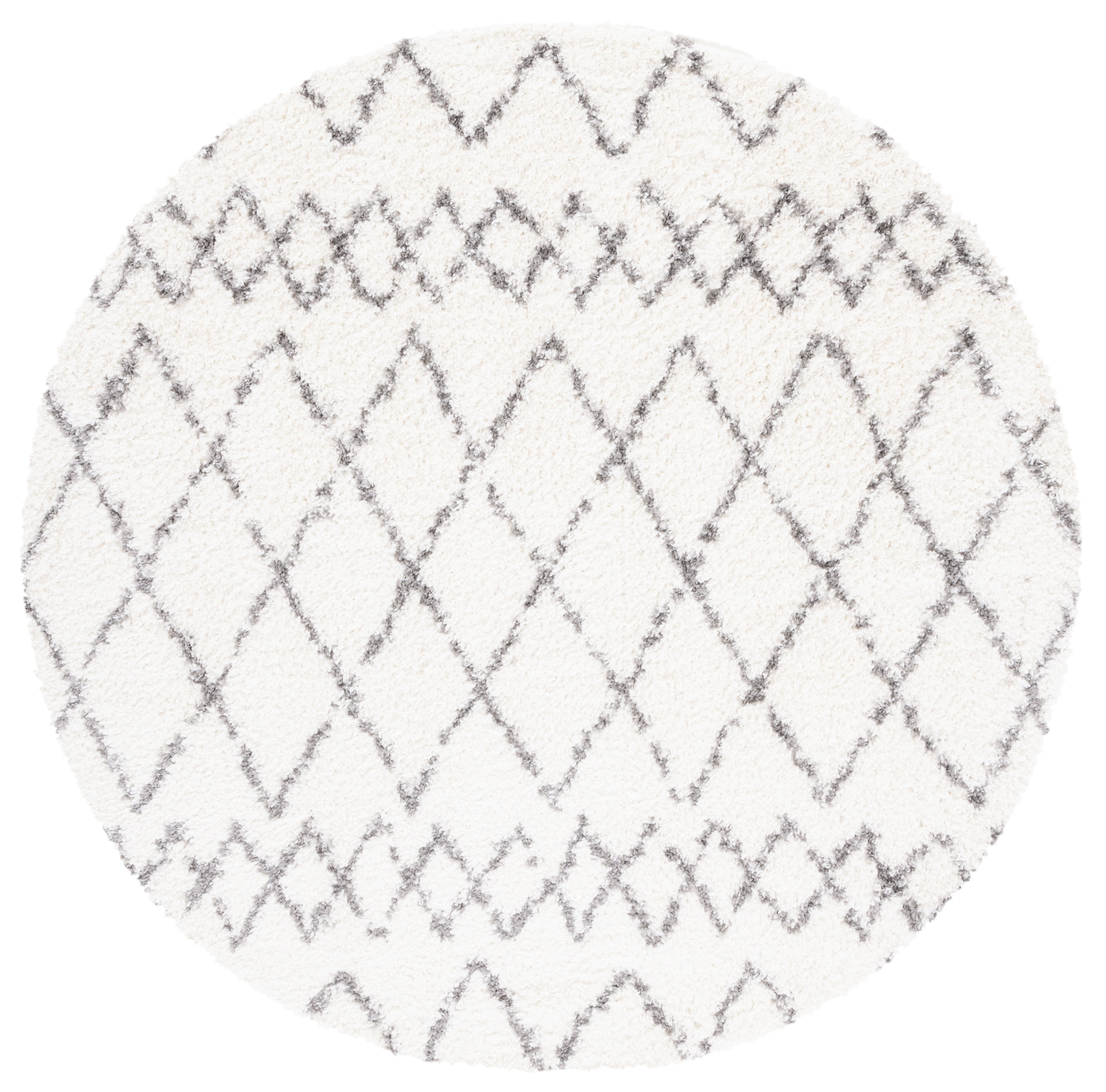 SAFAVIEH Berber Feride Geometric Shag Area Rug, Cream/Light Gray, 5’1″ x 5’1″ Round