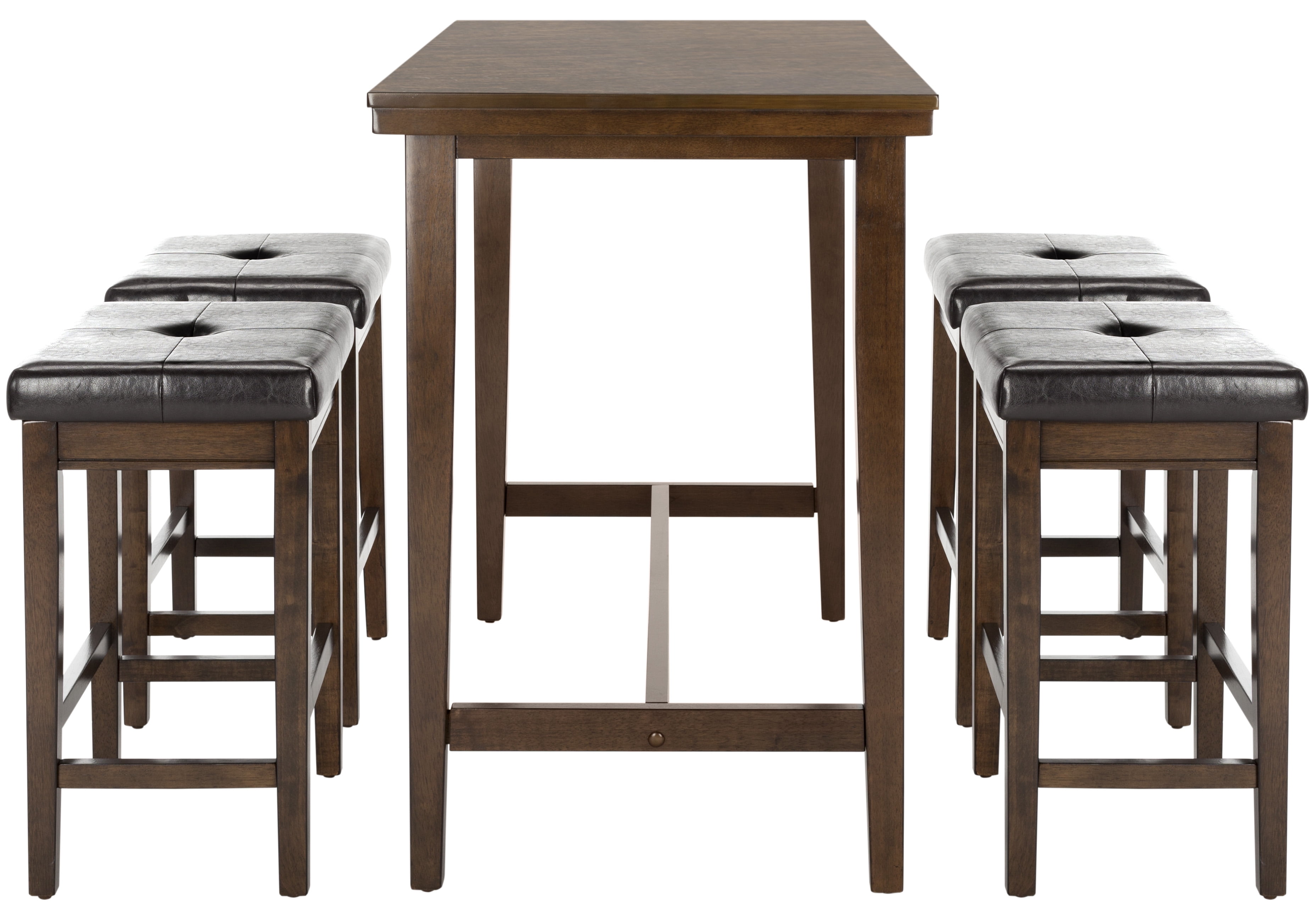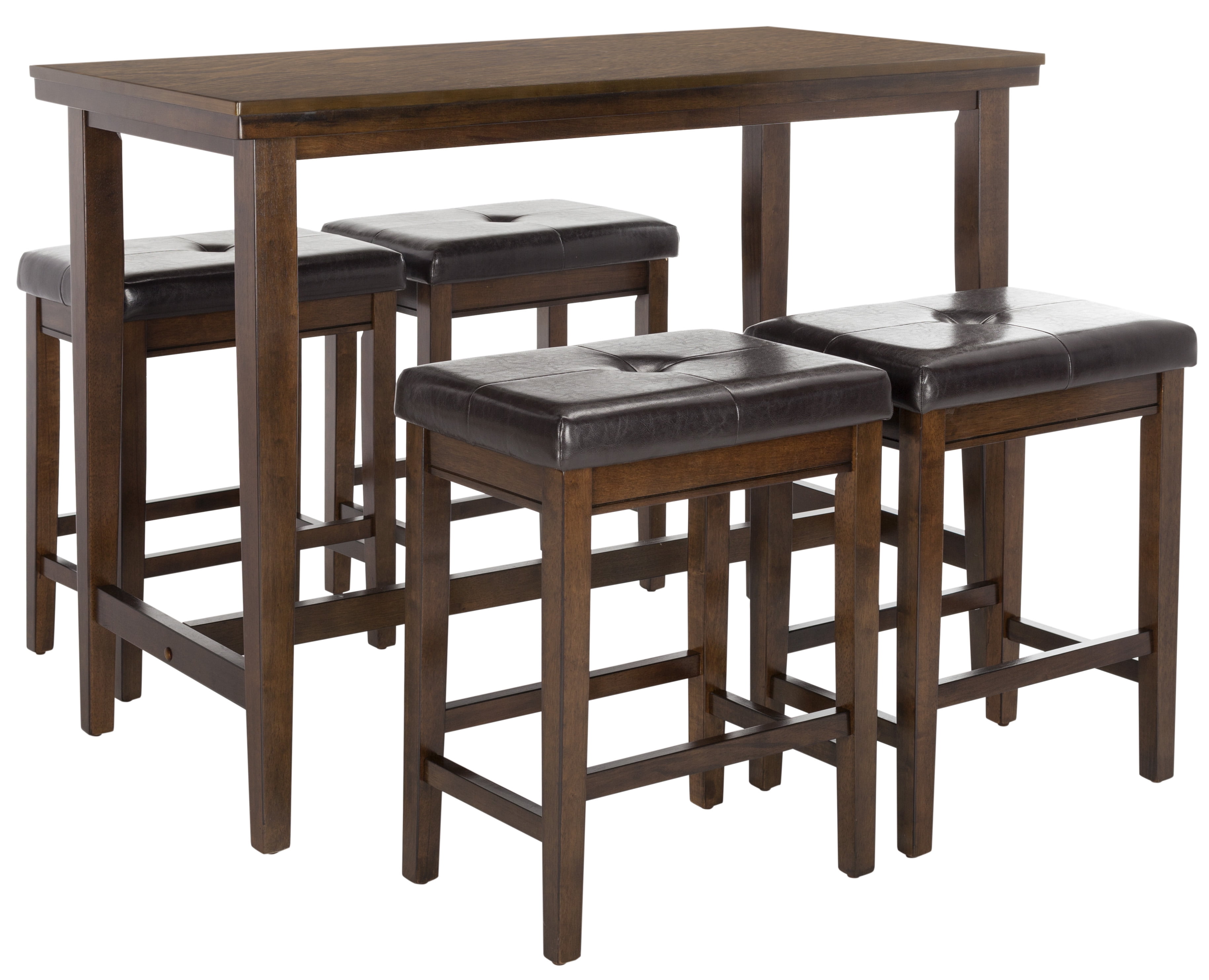 Shop SAFAVIEH at . Save Money. Live Better. SAFAVIEH Billy Solid Contemporary 5-Piece Wood Pub Set, Dark Brown Bring home English charm with this 5 piece pub set. Ideal for any dining or entertaining area, its versatile upholstered stools make it a favorite of family and friends. The dark brown finish on its rubber and mango wood construction makes it a classic. For over 100 years, SAFAVIEH has set the standard for finely crafted rugs and home furnishings. Begin your rug, furniture, lighting, outdoor, and home decor search and discover over 100,000 SAFAVIEH products today.