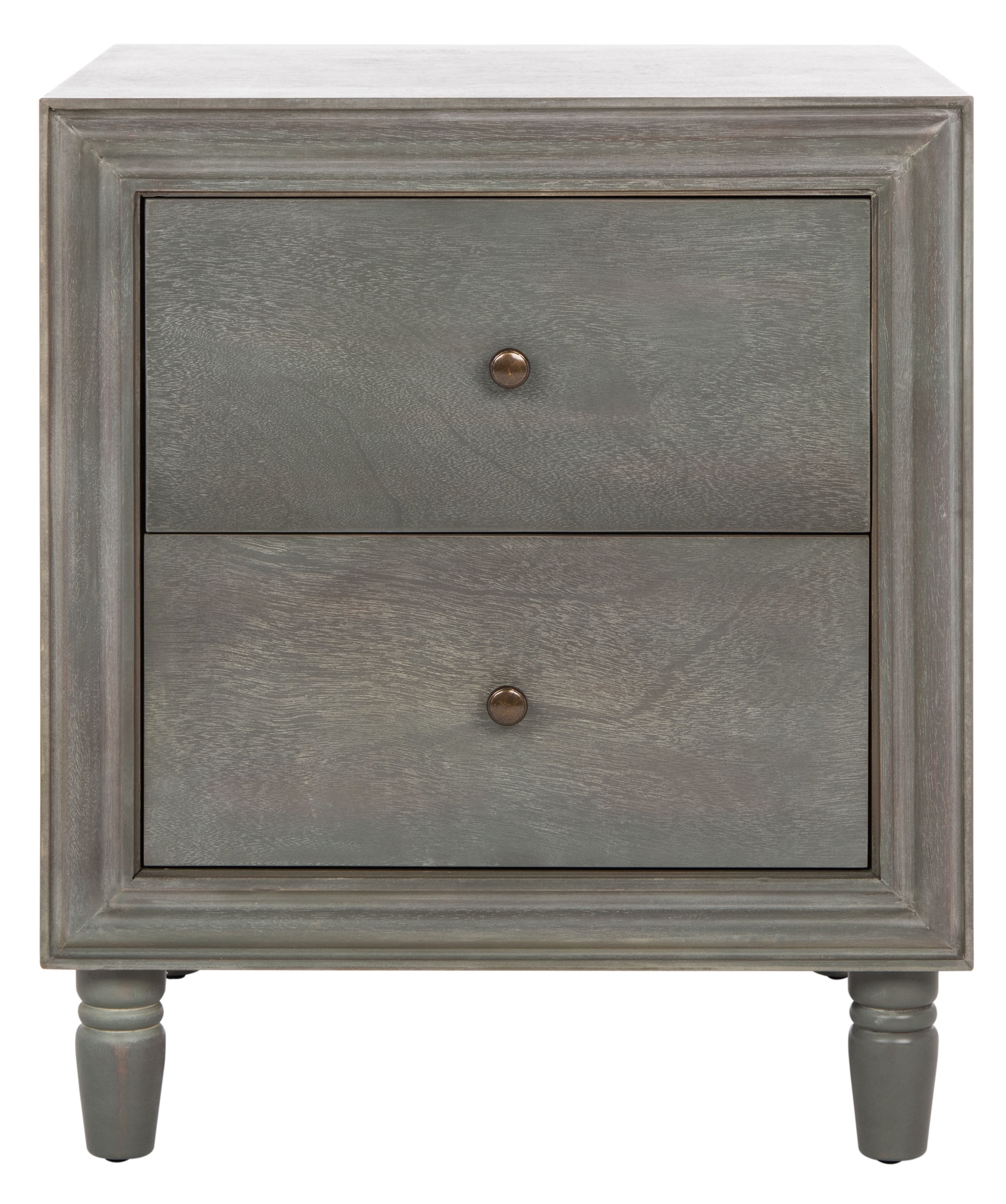 Shop Safavieh at . Save Money. Live Better. SAFAVIEH Blaise Nautical Nightstand with 2 Storage Drawers, French Grey Edgy and elegant, the Blaise nightstand by Safavieh is where sweet dreams start. Its sturdy elm construction, French grey finish and two ample drawers make it the perfect place to store anything from love letters to stress-relieving lotions. Durable and multi-use, this nightstand is the perfect addition in your home for a designer stylish upgrade.